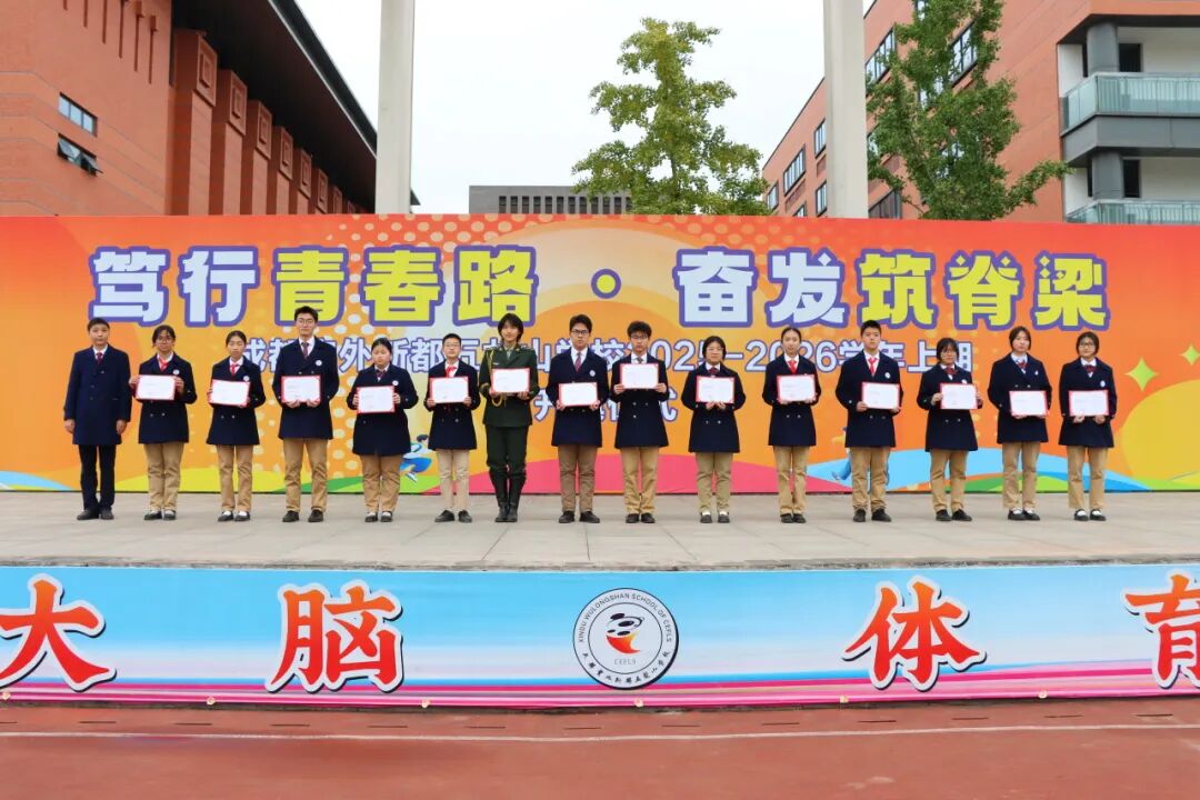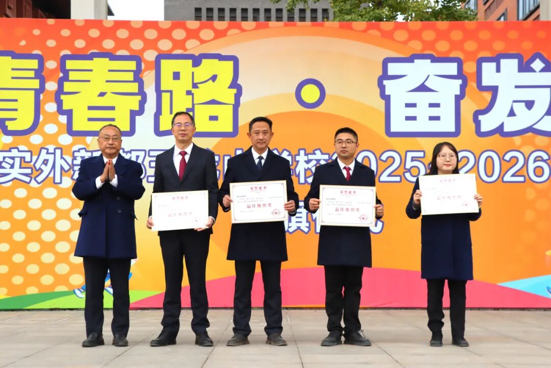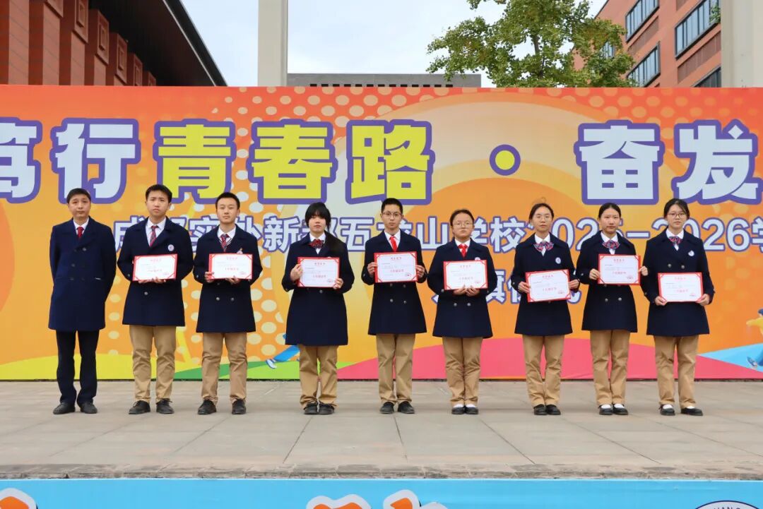 本次升旗仪式还举行了颁奖典礼,校党总支书记校长李俊、副校长张盛、校长助理兼学工部部长林成臣分别为第九届团委会、学生会、大队委学生干部代表颁发聘书并表示祝贺。学生会干部是连接学校与同学们的桥梁,更是校园秩序的维护者。李俊校长勉励他们在服务中学会团结协作,在担当中培养组织管理及领导能力,为未来的人生奠基。