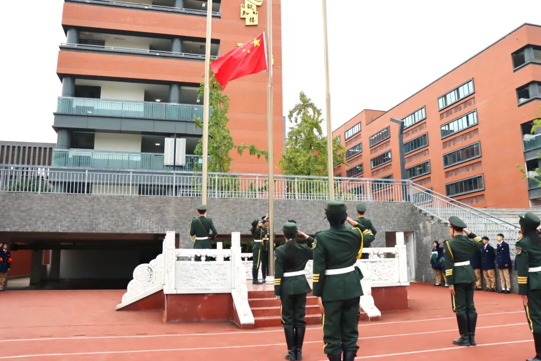 上午9点30分,升旗仪式正式开始,升国旗,奏唱中华人民共和国国歌,少先队员行队礼,其余师生行注目礼。