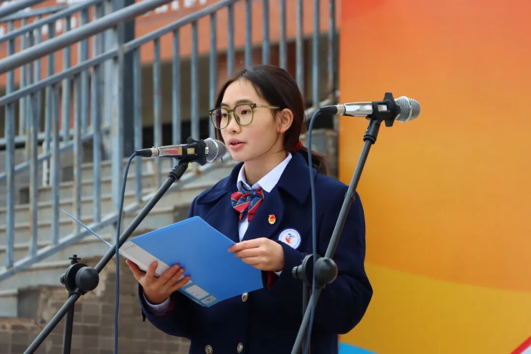 李智颖同学在献词中提出,青年学子应践行自主、自立、自治的精神。“三自”如同支撑我们人生的三根支柱,是从“要我做”走向“我要做”,从“听安排”走向“做青春主人”的必经之路,更是青春岁月中最珍贵的能力勋章。自主是明确方向的清醒,学习不是被动地接受任务,而是要主动去探索知识。主动制定学习计划而非等待老师催促,主动弥补知识漏洞而非依赖他人监督,只有主动学习才能让成长更有目标。而自立是立足天地的筋骨。独立完成作业钻研难题,遇到问题主动沟通而非依赖老师,让我们在未来的风雨中拥有站稳脚跟的力量。自治是行稳致远的罗盘。作为校园一份子,我们不仅是规则的遵守者,更是集体的建设者。例如:在课堂上遵守纪律,不影响他人;在宿舍里互相包容,共建和谐氛围;在活动中主动分担,积极贡献力量——这些都是自治的具体体现。自治让我们学会换位思考,懂得团结协作,在维护集体利益的同时实现个人价值的提升,共同将校园建设成为人人共建、人人共享的温暖家园。最后李智颖同学呼吁同学们:从今天起让我们争当自主的学习者,勇做自立的行动者,敢为自治的践行者。