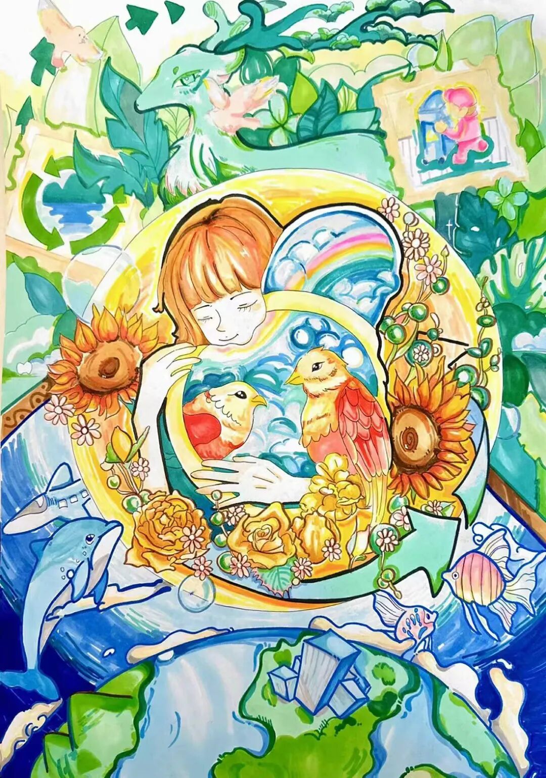 同学们以画笔为媒,以创意为桥,展现了对环境保护的深刻理解。他们的作品不仅传递了对自然之美的赞叹,也揭示了环境污染的严峻现实。