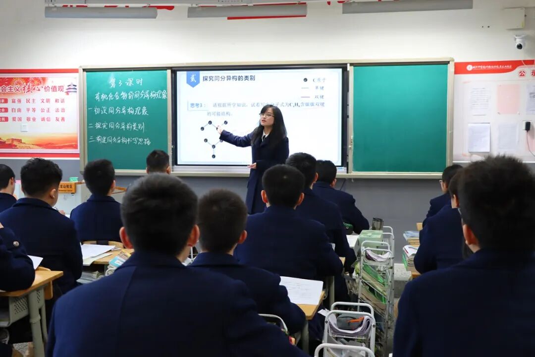 游老师以必修二知识为基点,围绕同分异构体的分类与判定展开教学设计:通过典型案例对比引导学生归纳相关规律;运用问题驱动、递进式提问启发学生自主构建思维路径,注重学法指导,在实践训练中培养学生系统分析能力,实现知识整合与迁移应用。
