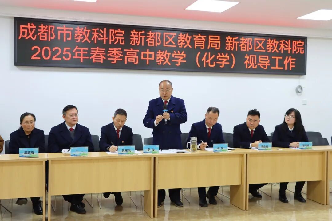 为有效提升学校和区域高中化学课堂教学的教学效益,2025年3月20日,成都市教科院化学教研员邓玉华及成都市高中化学教学专家周炜、李思盛、崔正淳一行莅临成都实外新都五龙山学校,对学校的高中化学教学工作进行了深入的视导,新都区教育局教育科副科长许彬,新都区教科院副院长王继雄、中学所所长陈翠兰、化学教研员张文锋及新都区高中化学教师同步参加了听课与反馈活动。在本次视导活动中,我校化学老师夏正春、游兴婷、唐义楚、熊永桃分别就《氧化还原陌生方程式的书写》、《有机化合物的同分异构现象》、《化学反应与能量变化》、《工艺流程“四线法”》等课题展开了汇报教学,专家团队在观课议课、听取汇报后进行了深入专业的指导。