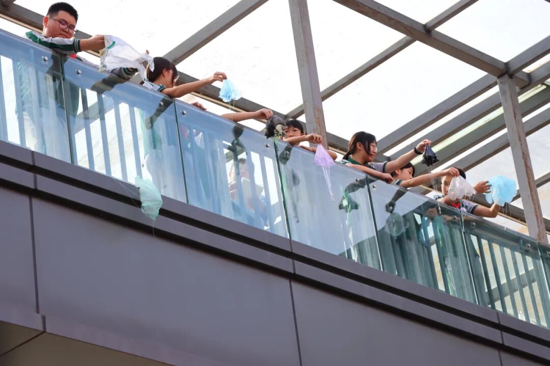 近日,暖阳倾泻,微风轻拂,往日宁静的校园摇身变为热闹非凡的物理学竞技场。初二年级 “物理跨学科实践之降落伞比赛” 如期而至,欢呼声、惊叹声与对物理原理的热烈探讨交织回荡,为这堂 “天空中的物理课” 奏响了生动的序曲。
