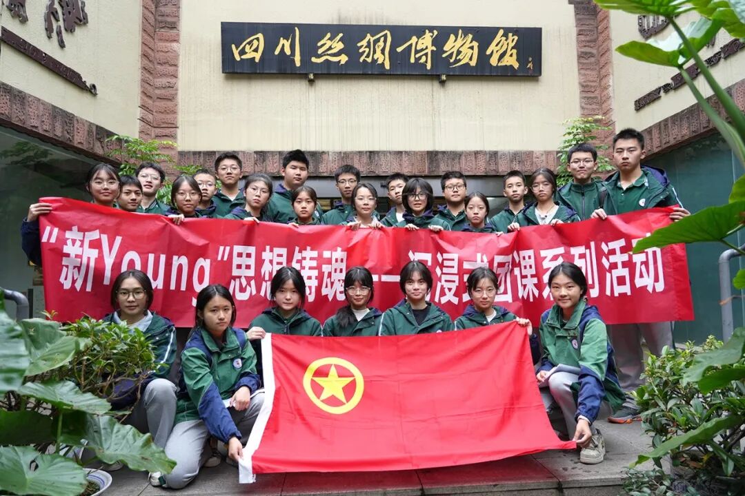 为深化青少年思想政治引领,推动"传承红色基因·培塑时代新人"主题教育走深走实,2025年11月4日,在新都区团区委的组织下,我校团委带领26名团员及入团积极分子代表赴四川丝绸博物馆参加沉浸式主题团课活动。