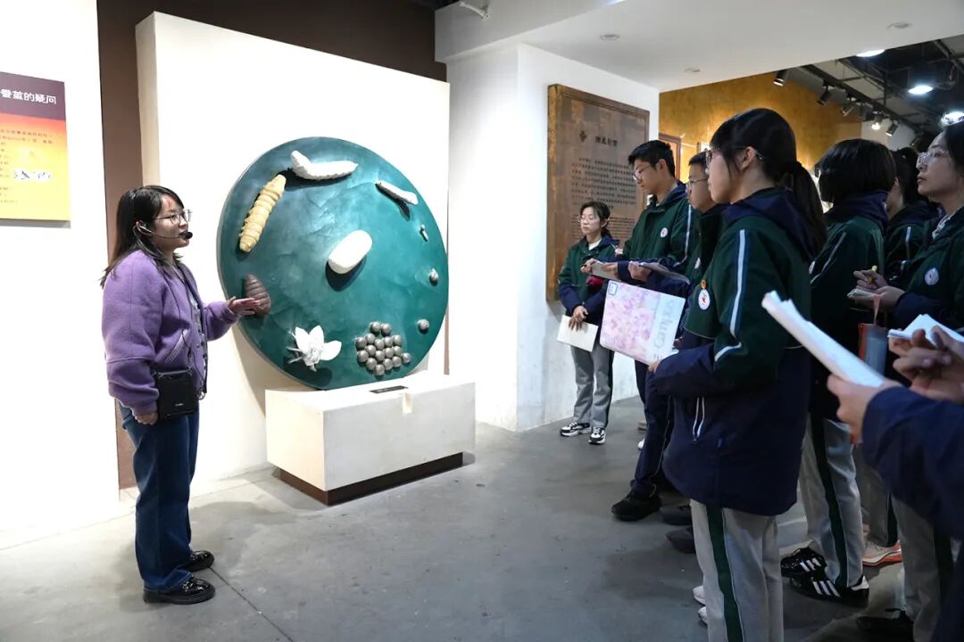 在博物馆专业讲解员的引导下,同学们沿着千年丝路的历史脉络,系统了解了中国丝绸从桑蚕养殖到织造技艺的完整过程。通过亲手触摸丝织品感受丝绸制作工艺,亲眼见证织机的现场操作,重点了解了蜀锦的独特织造技艺与艺术特色。珍贵的文物实物和详实的图文资料,让源远流长的蜀锦文化在同学们面前生动展现,使大家深入领略了本土非物质文化遗产的独特价值。