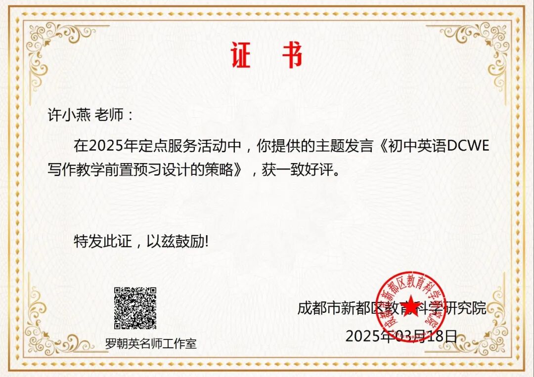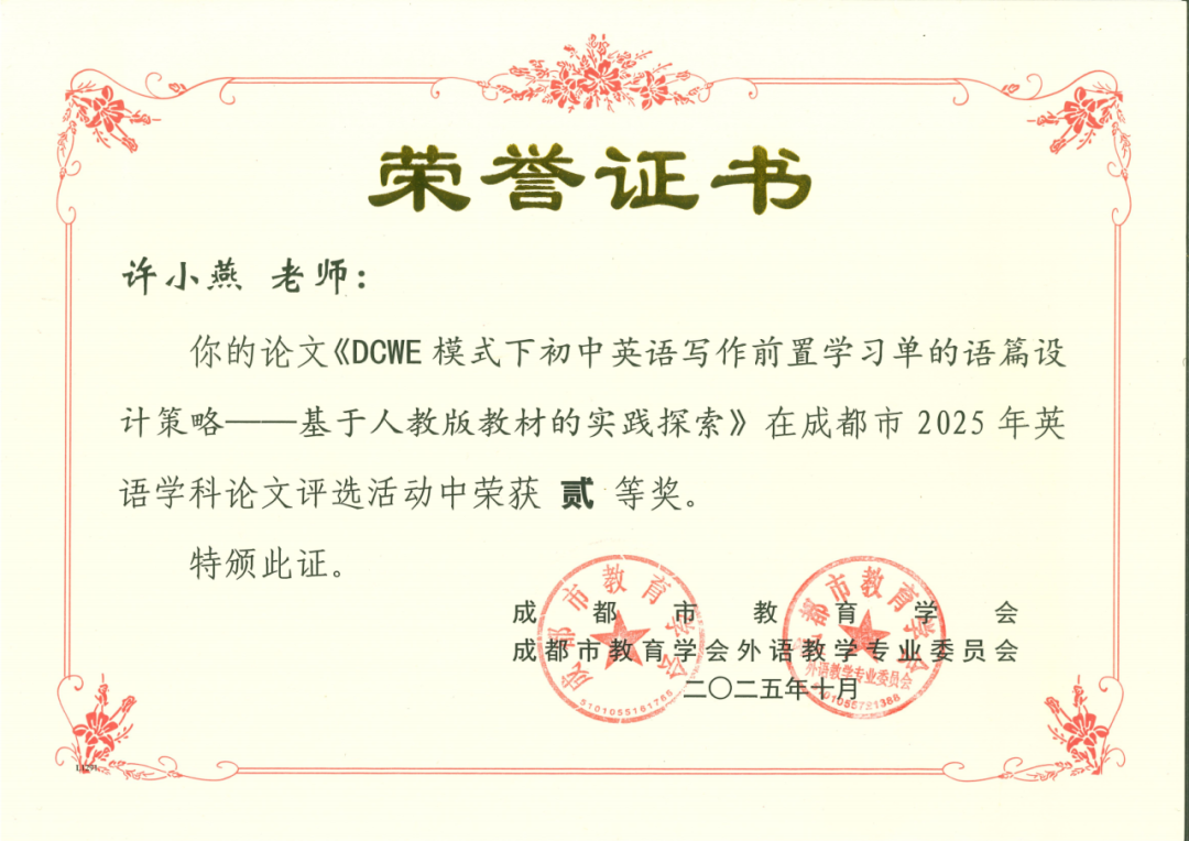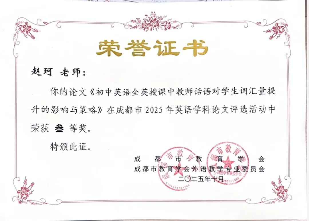 初中外语组上述建设情况的回溯,不仅是对专业深耕的生动注脚,更昭示着未来发展的清晰方向。展望新征程,我们将继续以创新为舟、以研究为帆,在智能技术与教育深度融合的浪潮中探索前沿,在写作教学与课程建设的沃土上持续精耕,赋能学生成长,引领教学变革,为英语教育的高质量发展注入更多智慧与力量。