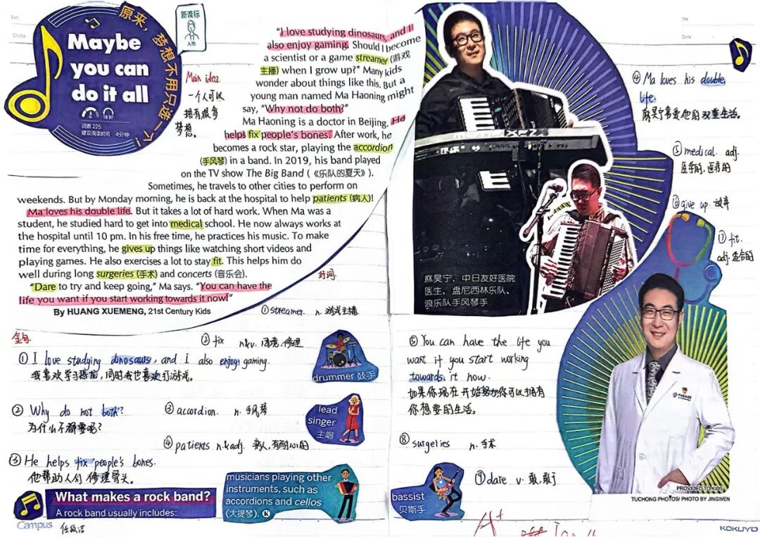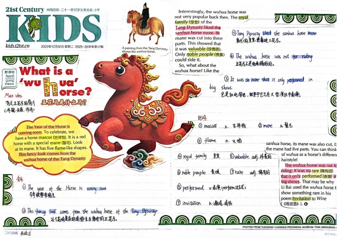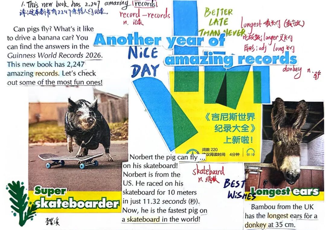 “21世纪报剪贴”是初中生的一个极佳词汇库。在完成报纸阅读和教师讲解后通过选择并剪贴感兴趣的文章,学生们不仅接触到了地道且与时俱进的英语,还积极拓展了词汇资源。这项活动超越了死记硬背,鼓励学生在语境中理解单词,在使用中注意搭配和句型结构。最终,这种“阅读积累”的习惯极大地丰富了他们的语言工具箱,使他们的写作更加生动和多样化。