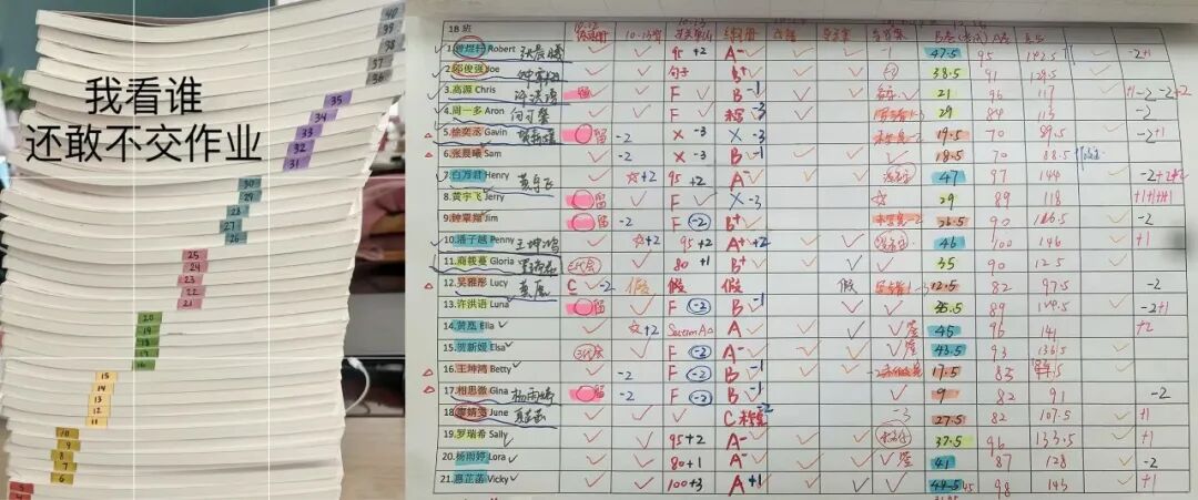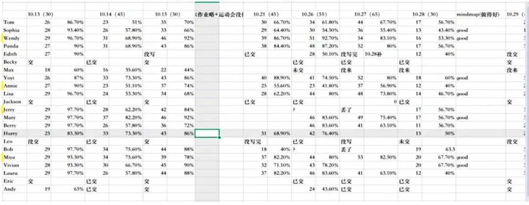 从这细致的作业统计表可以看出老师们一丝不苟、精益求精的工作态度。
