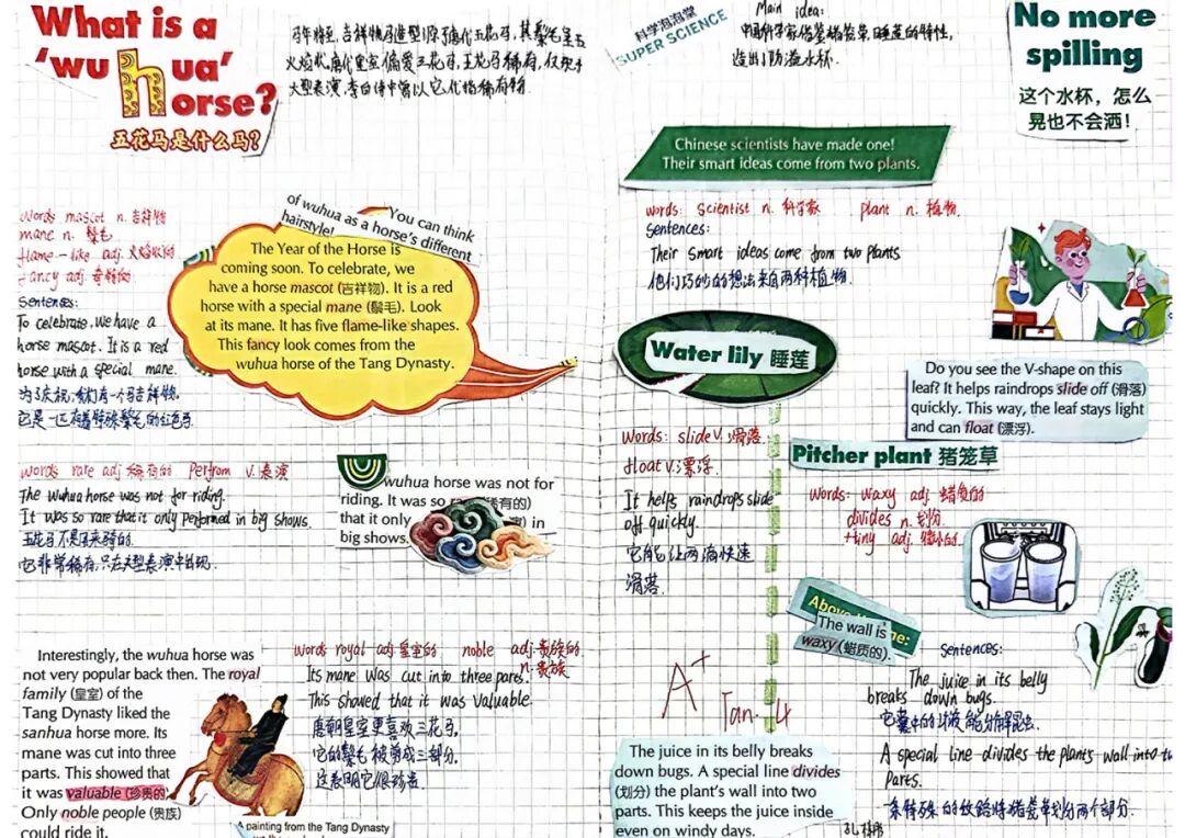 中国文化如同一颗璀璨的明珠,闪耀着智慧的光芒。为了传承这份深厚的文化遗产,提升学生文化意识,帮助学生涵养家国情怀,坚定文化自信。同时,培养学生语言应用能力和跨文化沟通交流能力,激发学生学习英语的积极性。英语组特别推出了以“用绘画展现中国文化,用英语讲述中国故事”为主题的英语手抄报活动并对优秀作品进行展示。