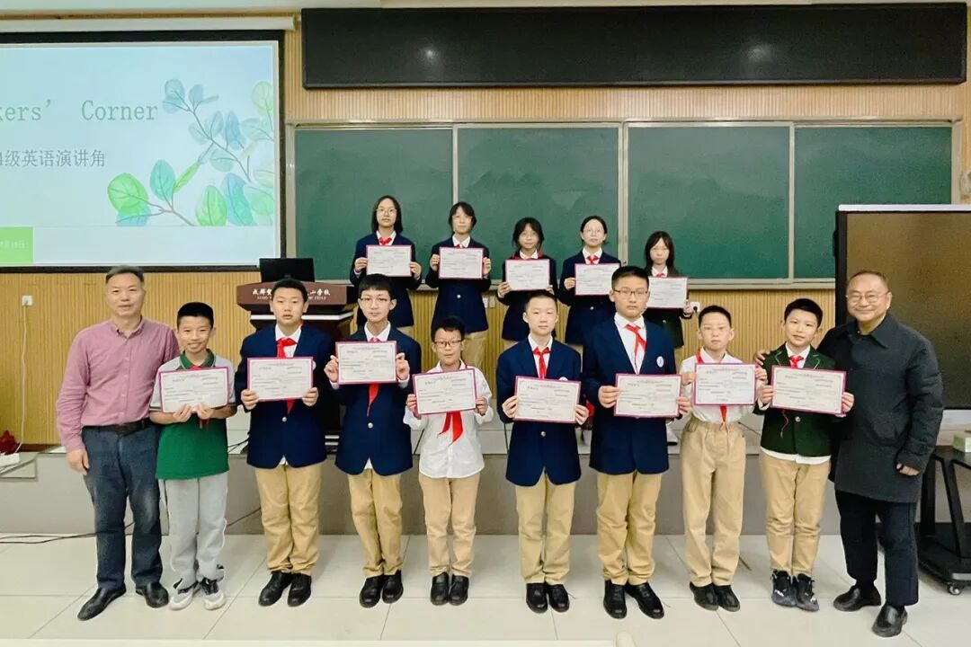英语不仅是一门世界性的语言,还是打开世界大门的钥匙。目前世界上绝大部分先进的资讯、技术、人文知识都是通过英语传播的。因此我们希望同学们从初一开始就要卯足了劲儿打好英语基础,开阔眼界,提升格局,努力成长为智慧青年!通过演讲角活动,同学们对不同的话题进行分享交流,将英语生活化,达到“开口便知外校人”的水平!