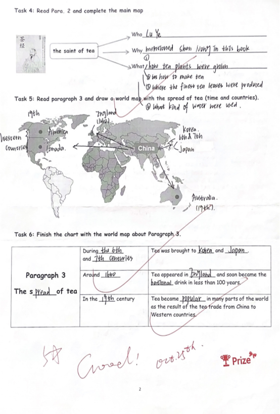 在作业反馈方面,教研组积极创新做法——由“打分”变“对话”,由“延时”变“即时”。传统的反馈方式——“阅”或“Good”已经显得低效,而创新反馈则更注重情感连接和思维引导。