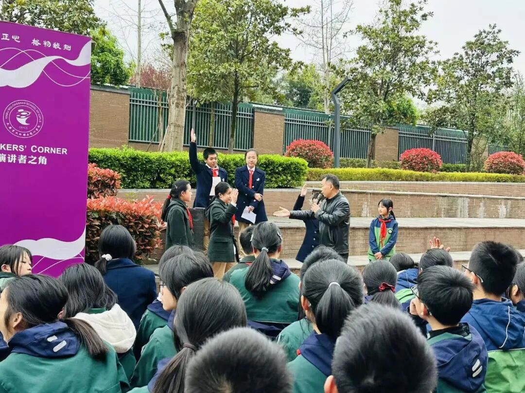 活动伊始,学校张盛副校长、年级主任李艾老师、年级组长李玉秀老师亲临现场,与同学们一同感受语言的魅力,见证思想的绽放,为春日的演讲角增添温暖的底色,也传递着学校对学子全面发展的殷切期许。