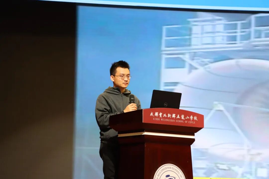 在实外五龙山,学校始终以培育兼具判断力、责任感与担当精神的智慧青年为育人目标,依托丰富多元的学科拓展活动与特色主题实践,为学子搭建瞭望世界的广阔平台,让书本知识走出课堂、落地实践,让科创精神浸润心田。3 月 23 日,五龙讲坛航空发动机科普专场如期开讲,初 2024 级、初 2023 级学子齐聚一堂,共同探秘被誉为 “现代工业皇冠上的明珠”—— 航空发动机,在心中播下航空报国、科创筑梦的种子。本次讲座由成都实外新都五龙山学校学工部主任兰芳芳老师主持,特邀航发高级工程师陈昊旻老师主讲。陈老师凭借深厚的专业积淀与丰富的行业经验,为同学们带来了一场干货满满、精彩纷呈的科普盛宴。