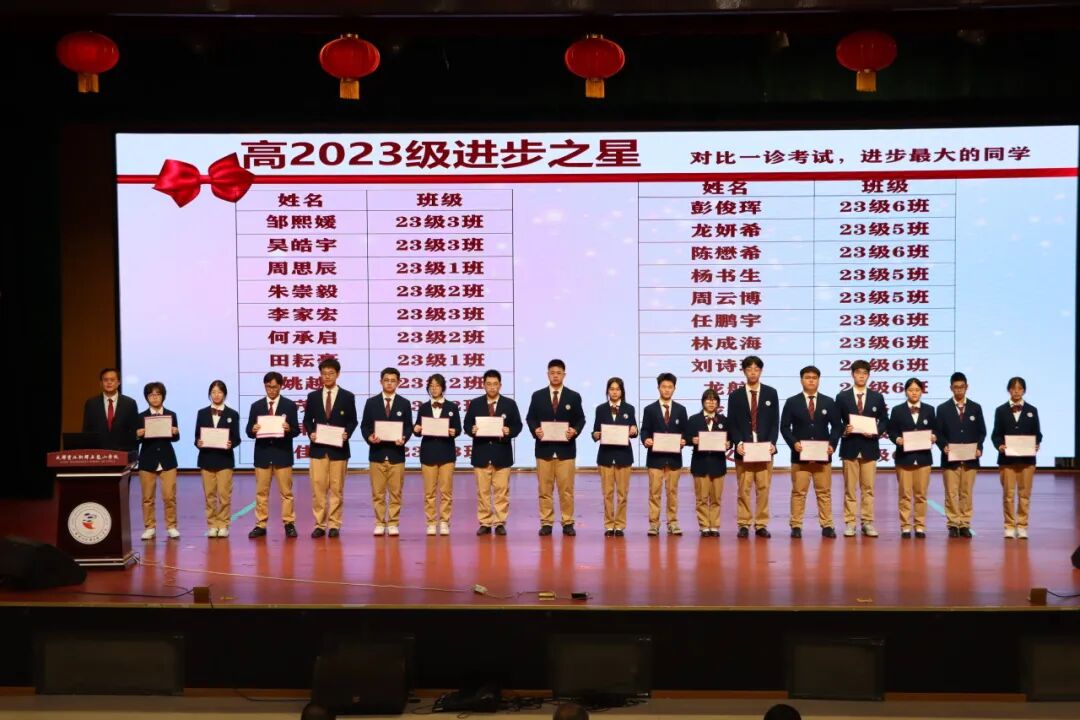 表彰不是终点,而是冲刺的新起点。本次二诊表彰暨学习经验交流会,不仅是对过往努力的肯定,更是对未来征程的动员。愿全体高2023级学子以此次表彰为契机,以榜样为灯塔,以奋斗为船桨,在最后的高考冲刺阶段,全力以赴、不负韶华,用汗水浇灌梦想,用拼搏书写辉煌,在2026年高考中旗开得胜、金榜题名,奔赴属于自己的璀璨未来!