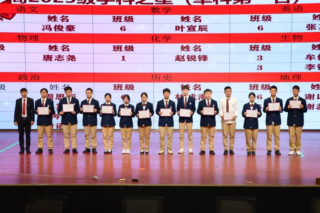 随着荣誉名单逐一宣读,获奖学子们精神抖擞地走上领奖台,依次接受校领导颁发的荣誉证书。台下掌声雷动,既是对获奖学子的热烈祝贺,更是对全体高三学子的激励与期许。