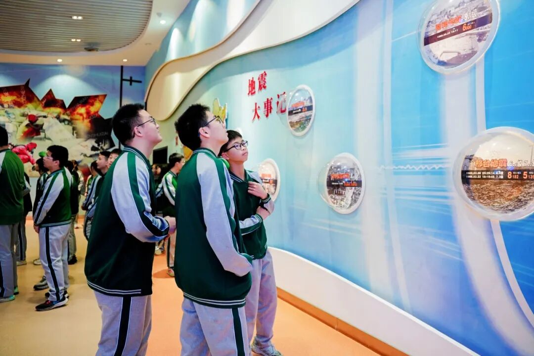 第二天上午,同学们走进爱国主义地震科普馆,开启了一场安全教育课堂。通过模拟地震体验、观看科普视频、学习应急避险知识,大家了解了地震的成因与危害,掌握了地震发生时的自救互救方法。在模拟场景中,同学们认真演练躲避、撤离动作,严肃对待每一个细节。这场科普活动,不仅让同学们增强了安全意识,更懂得了生命的可贵,培养了临危不乱的心理素质。