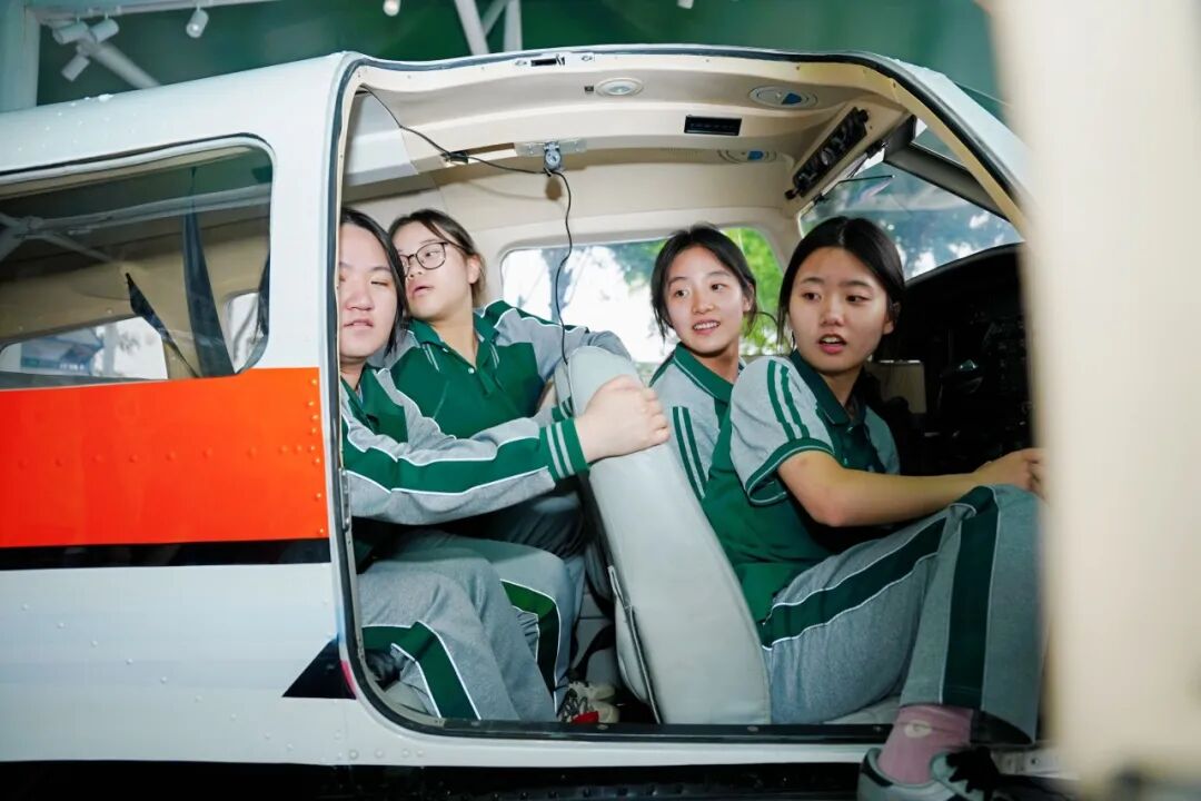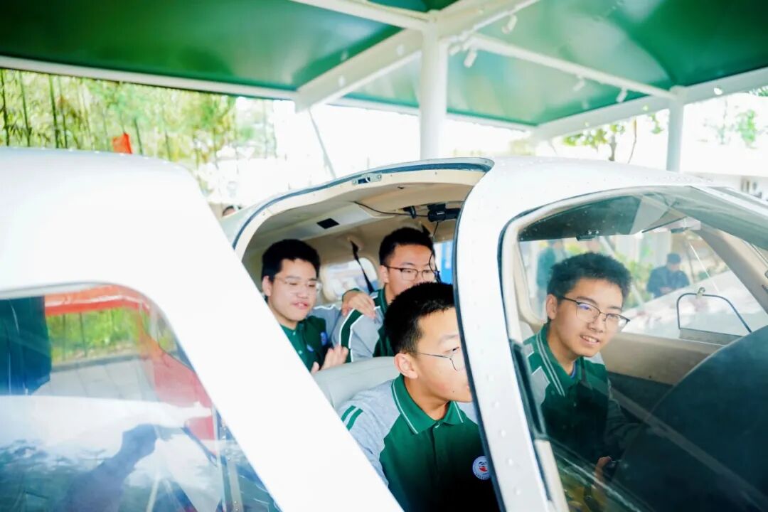在航空科普馆、知识竞赛馆、飞机场地等场馆里,同学们开启了一场奇妙的科技探索之旅。航空馆内,大家近距离观察航空模型,聆听专业老师讲解现代农业与航空技术的融合应用,从无人机的操作原理到智慧农业的发展前景,眼中满是对科技的好奇与向往;知识竞赛馆中,一场关于航空航天知识的头脑风暴正在上演,同学们分组抢答、激烈讨论,在比拼中深化对科技知识的理解;飞机场地里,大家观摩飞行器的演示,亲手操作模拟设备、体验真实机舱,感受科技带来的震撼与魅力。