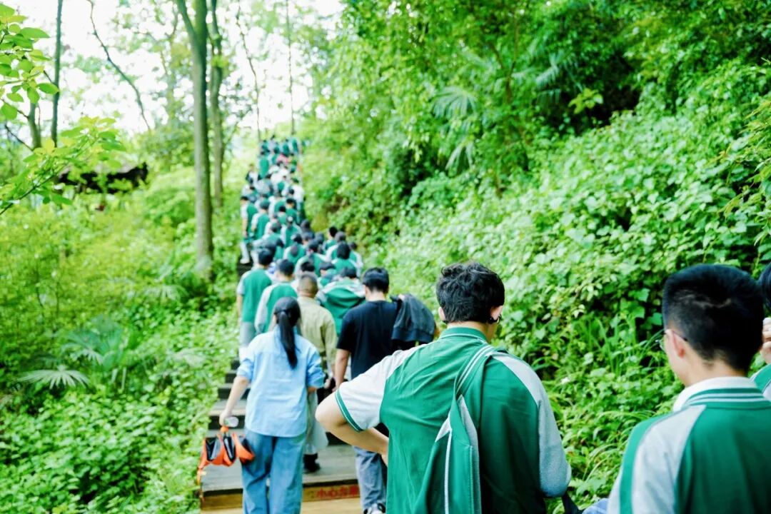 午后的青城山前步道,绿意盎然,空气清新。同学们背着行囊,沿着步道前行,脚步轻快而坚定。一路上,大家欣赏着山林风光,聆听着鸟语虫鸣,感受着大自然的生机与美好。陡峭的台阶没有阻挡前行的脚步,疲惫的身躯在同伴的鼓励中重新充满力量。这场徒步之旅,不仅锻炼了同学们的体魄,更让大家懂得了坚持的意义,学会了在团队中相互扶持、共同进步。
