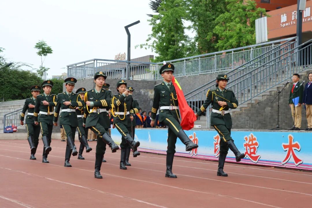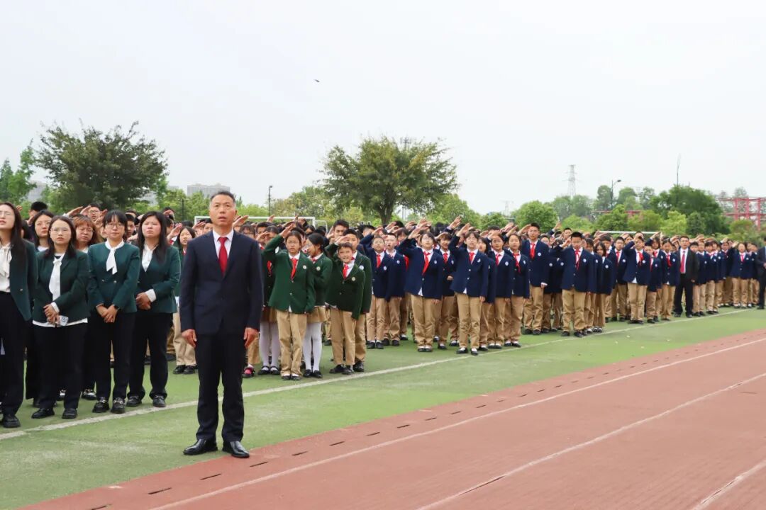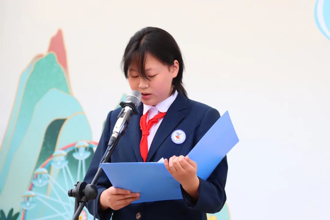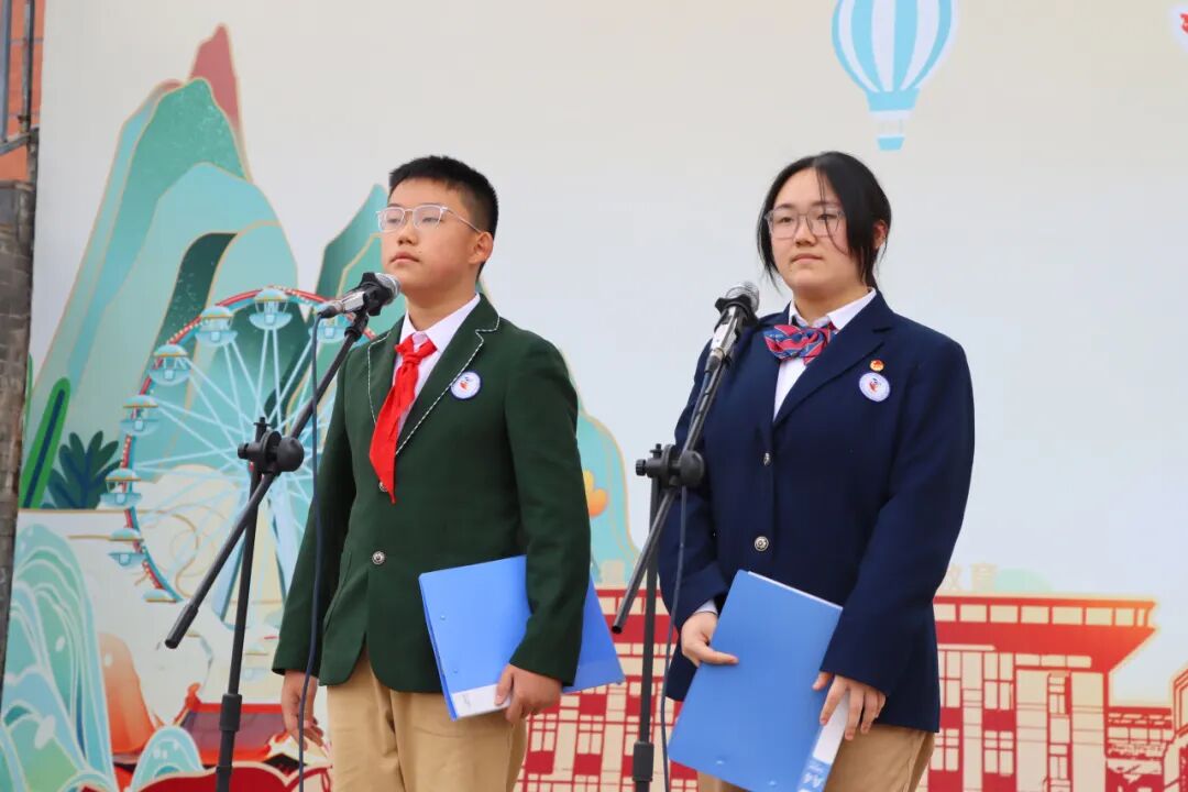 在本次仪式上,初一3班唐紫怡同学为大家带来主题为“书香润心灵,行走阅山河”的国旗下献词。在世界读书日来临之际,唐紫怡同学分享了研学之旅的所见所感:从昭化古城到剑门关,从翠云廊到明月峡,再到阆中古城,她用脚步丈量山河,将书本文字读进心里。她提出“行走亦是读书,山河皆是书卷”的理念,呼吁同学们坚持每日阅读,热爱行走研学,在笔墨书香中涵养品格,在山河行走中开阔胸襟。