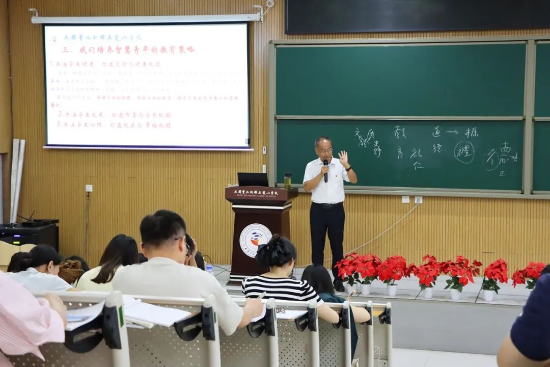 李校还分析了当前未成年人思想道德建设面临的严峻挑战,如不良的互联网信息给未成年人的成长带来的负面影响。对此,李校说在培养智慧青年的教育策略上,我校从多方面发力。首先关注学生健康,打造运动与健康校园。健康强壮的身体是学生未来生存与发展的物质基础,为此,“跑好操”被写入学校对学生的明确要求,每天每个学生必须参与早操、上午大课间、下午体锻三次体育锻炼,以此强健学生体魄,顽强学生毅力,培养学生竞争意识和集体意识。其次关注学生发展,打造书香与学术校园;还关注学生心理,打造欢乐与幸福校园,全方位助力学生成长为智慧青年。同时要在实践中坚持用好“责任支撑、目标引领、信心驱动、兴趣激发、习惯制胜、方法建模”的教育策略。