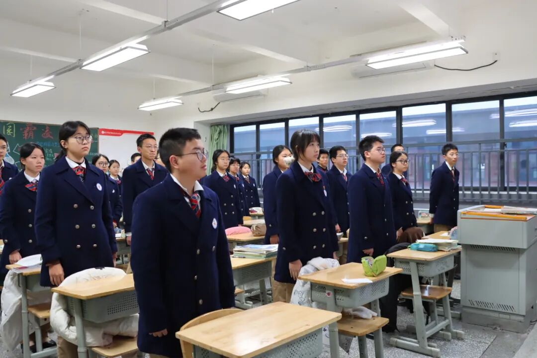 2024年12月23日,因天气原因,我校在室内举行了第17周升旗仪式,全体师生着正装参加。本周升旗仪式由校主持队张芮桤和刘子硕同学主持。