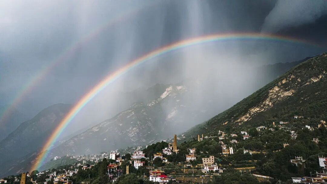1.《丹巴藏寨雨后的双彩虹奇观》