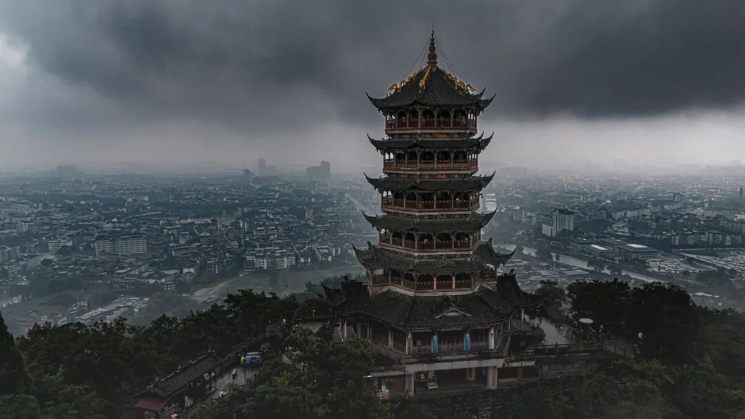 9.《都江堰 烟雨朦胧中的玉垒阁》