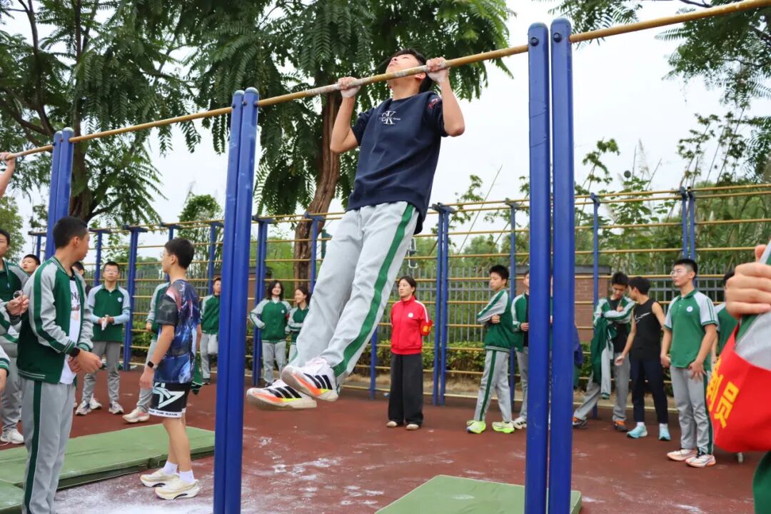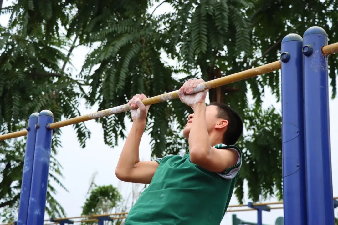 选手们紧握单杠,凭借手臂力量向上拉升,每一次成功的引体,都是对耐力与意志的考验,赢得场下阵阵喝彩。