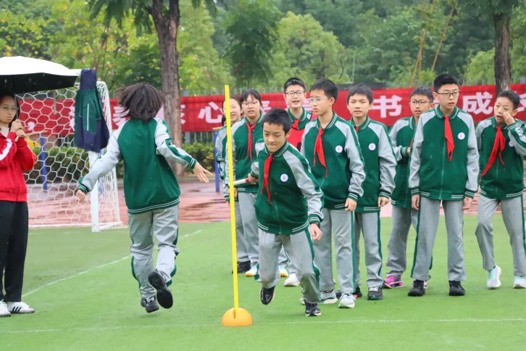 从长绳的默契配合转向50米接力赛的紧张角逐,队员们站位就绪,接力棒的传递如闪电般迅速,大家心往一处想、劲往一处使,为了团队荣誉奋力拼搏。