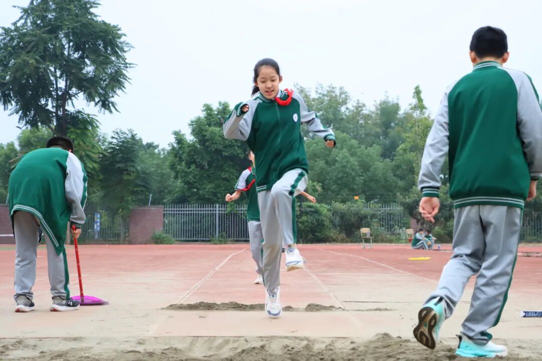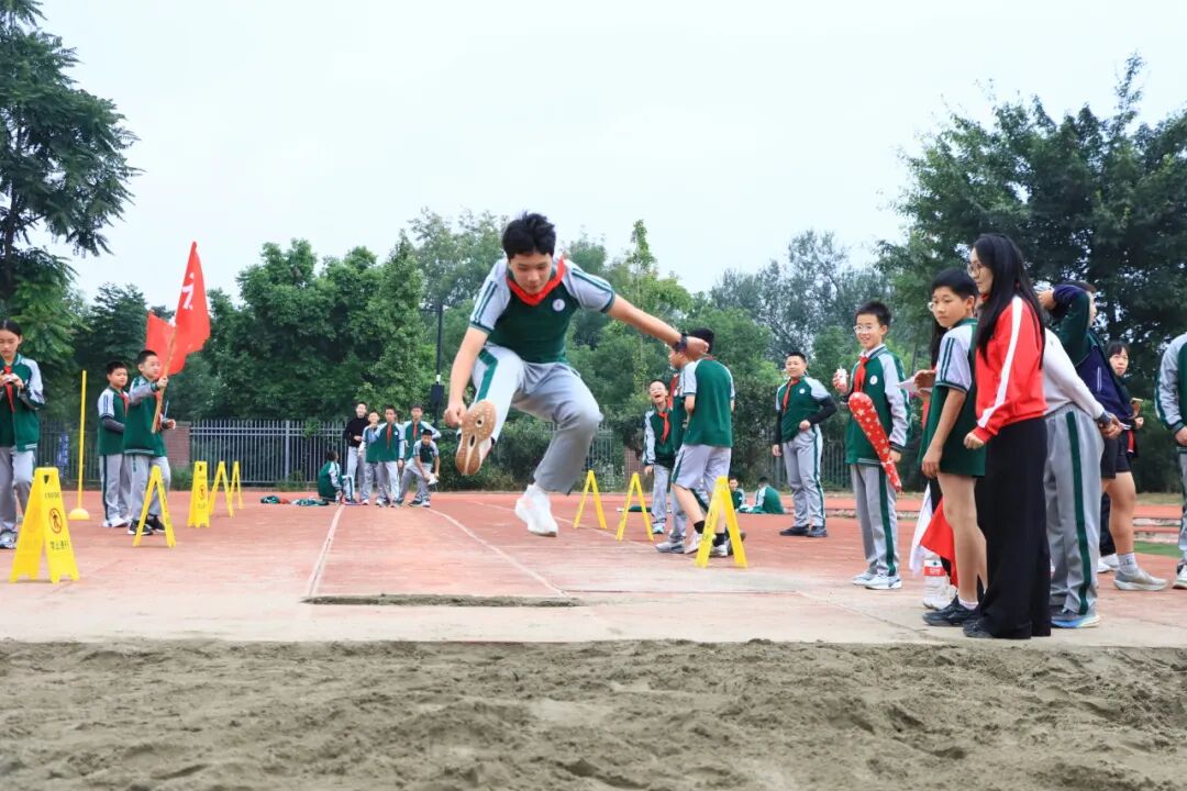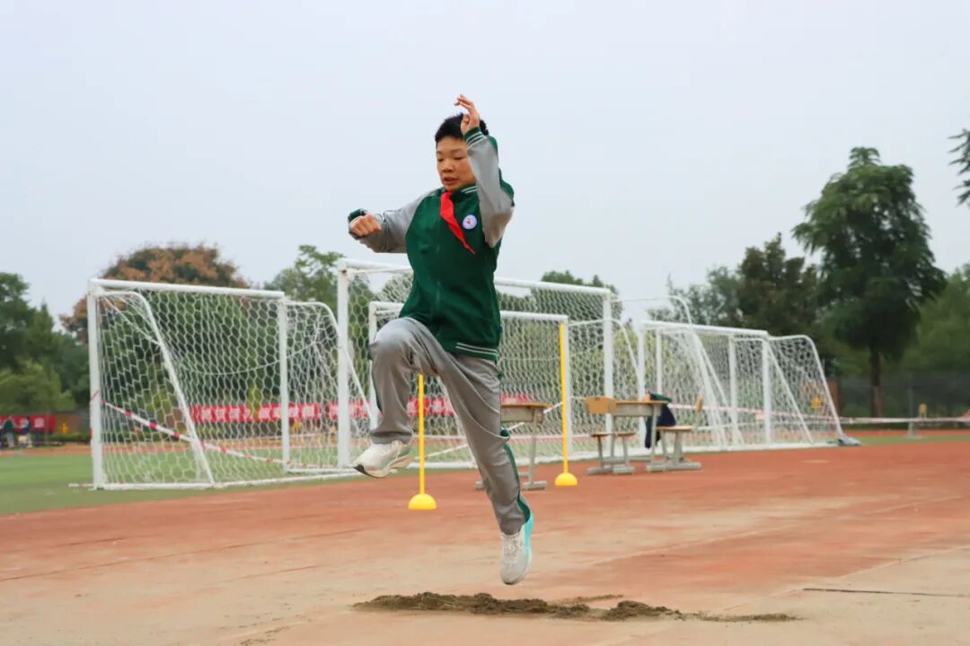跳远沙坑旁,选手们助跑、起跳、落地,每一次腾跃都向着更远的目标冲刺,沙粒扬起的瞬间,定格下青春的矫健身姿。