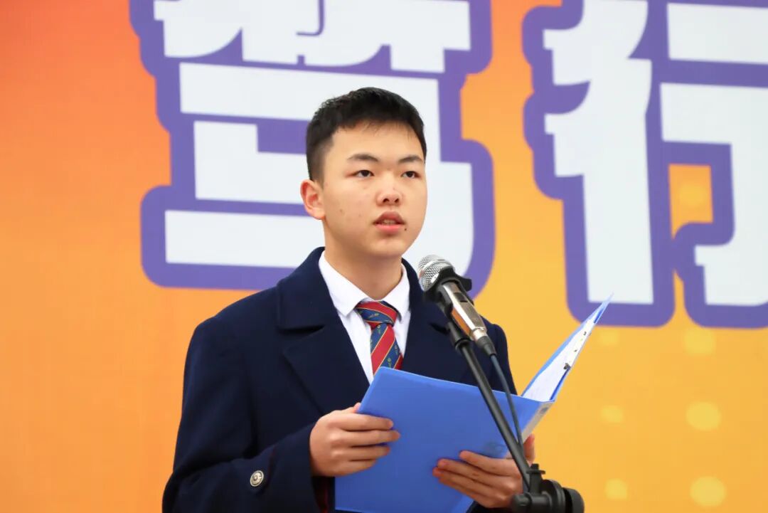 在本次仪式上,高二四班赵文杰同学为大家带来主题为“寒冬励志强体魄,凝心逐梦展风采”的国旗下献词。赵文杰说,虽然冬季气温较低,但这正是我们强健身心、砥砺意志的黄金时期,我们要积极投入到体育锻炼中,让强健的体魄成为应对学业、支撑未来的坚实基础。赵文杰同学谈到,运动与学习是相辅相成的,健康的体魄能带来更充沛的精力、更敏捷的思维和更坚韧的意志,是潜心求知、攀登书山的重要保障。赵文杰号召同学们以此冬为始,立坚韧之志,行强身之举,以更健康的身体、更饱满的精神和更团结的姿态,凝心聚力,共赴理想前程。