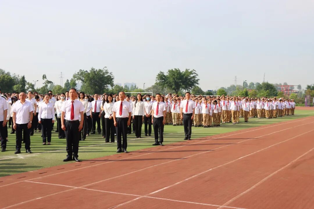 2025年5月19日,我校在运动场举行了第十四周升旗仪式,全体师生着正装参加。本周升旗仪式由校主持队徐其琛、何睿恩同学主持。