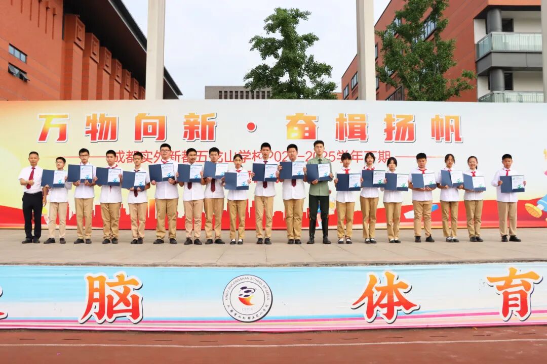 在“‘运动成都’2025年成都市中小学生武术套路公开赛个人赛”中,我校11名学生在太极拳、太极剑比赛中获得优异成绩,代东风副校长为他们颁奖。