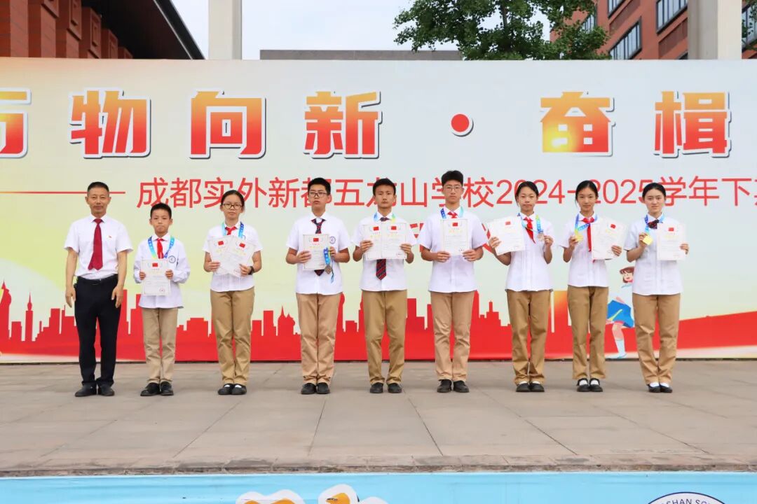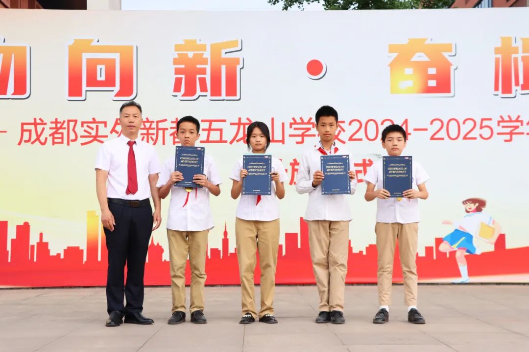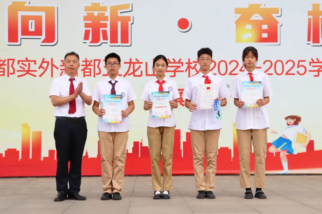 在“2025年四川省健身气功锦标赛(青少年组) ”中,我校芶振峰、韩沐承、平佳琳、黄煜捷斩获“八段锦集体项目”一等奖,杨韵之、林子琰、李浩宇、郭添毅获二等奖,李俊校长、张盛副校长为他们颁奖并表示祝贺。