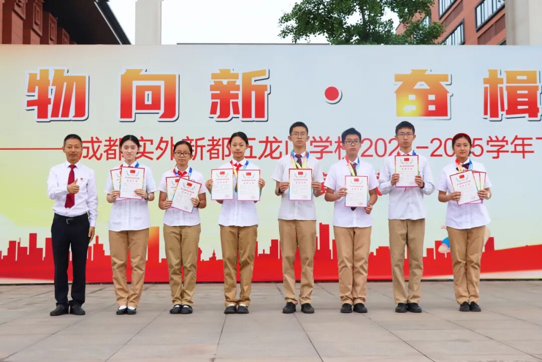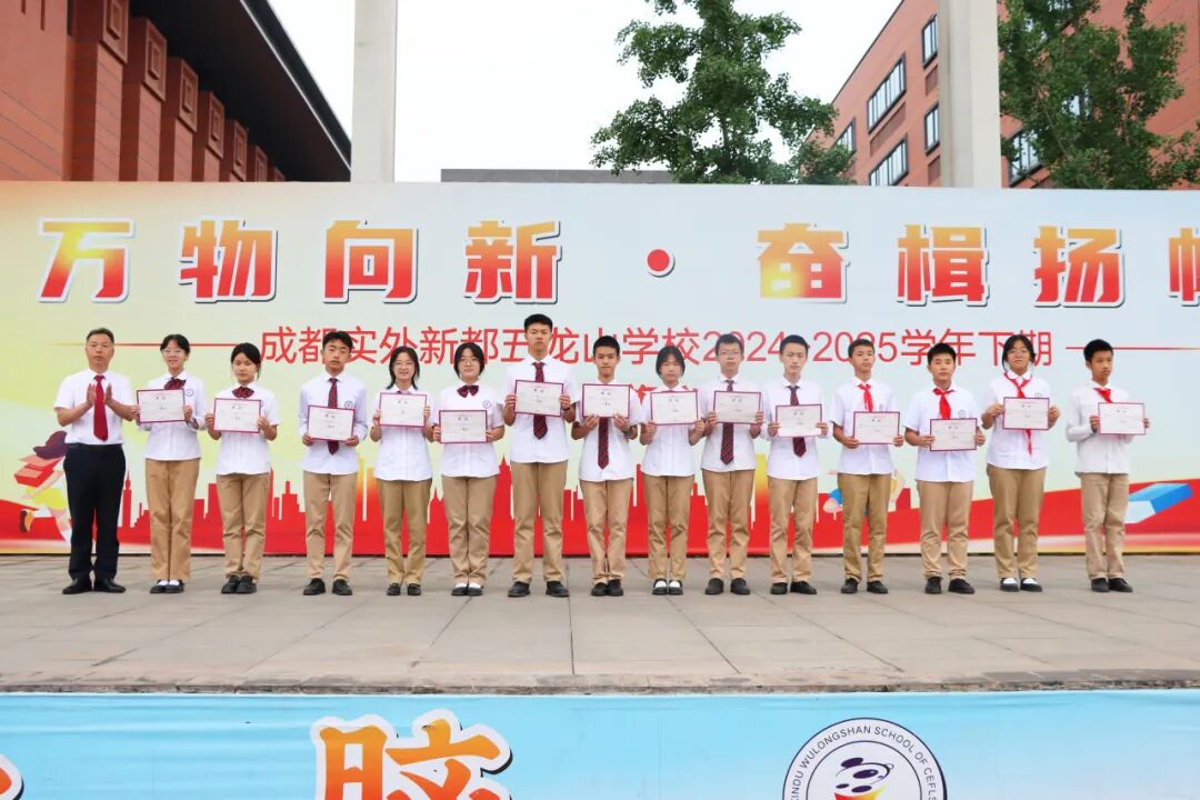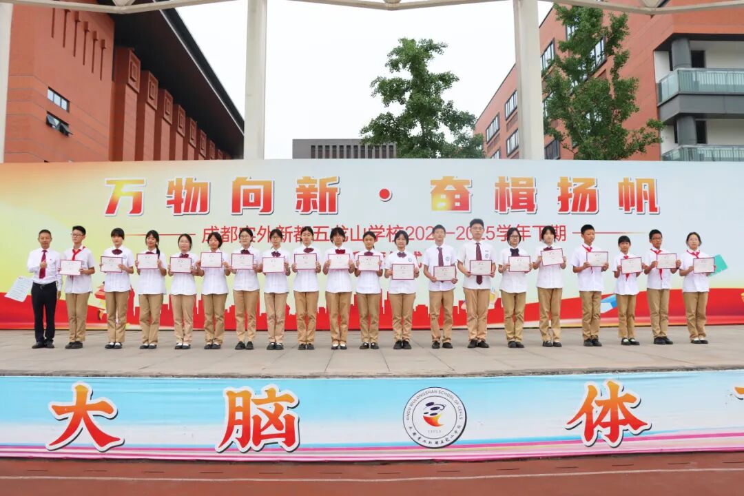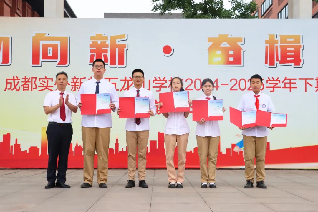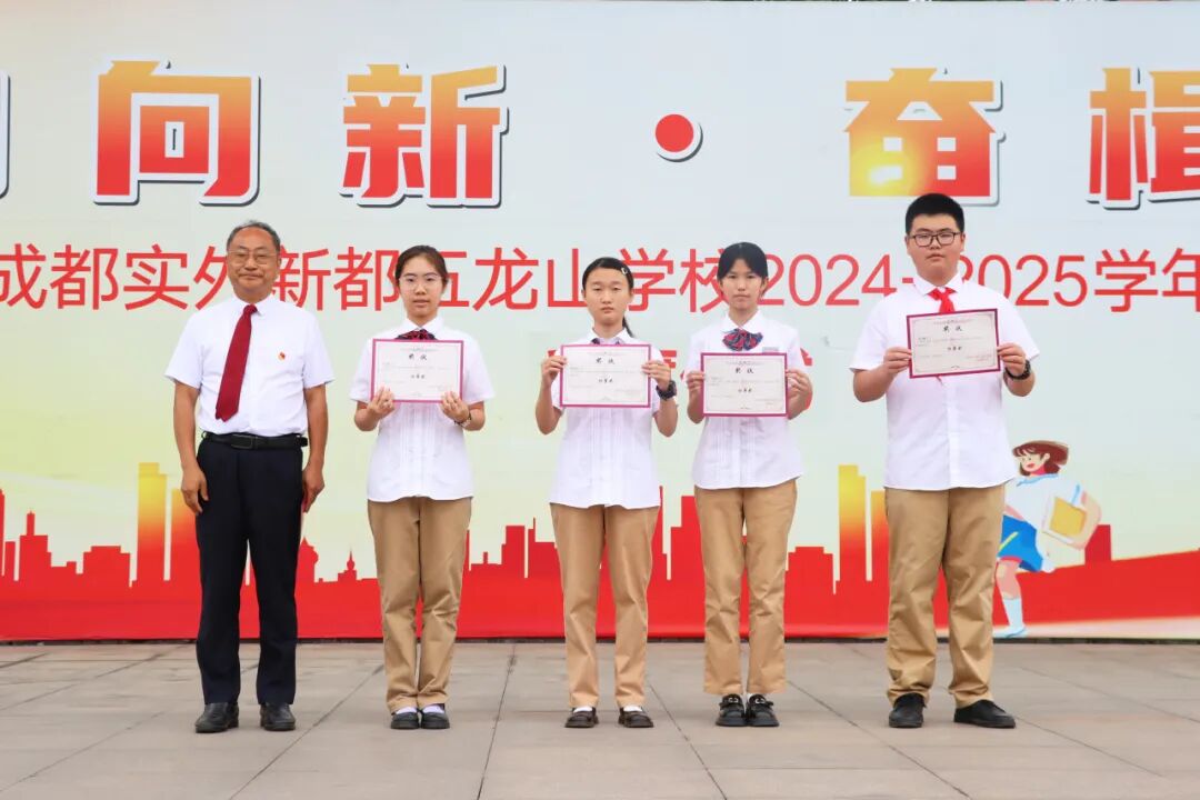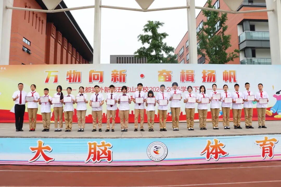本次升旗仪式还举行了颁奖典礼。翰墨飘香传雅韵,丹青溢彩竞风流。我校初中语文组举办了“2024—2025学年度下期书写比赛”,共评选出特等奖5人、一等奖15人、二等奖20人、三等奖25人。李俊校长、张盛副校长、代东风副校长、周密校助为他们颁奖并表示祝贺。