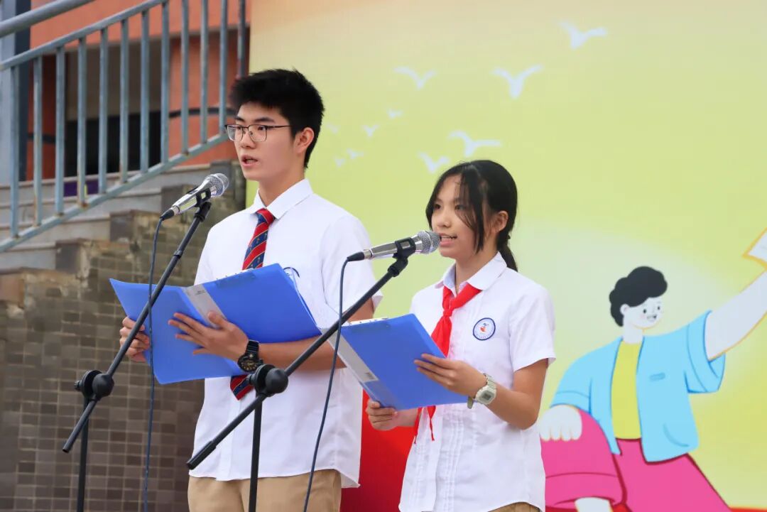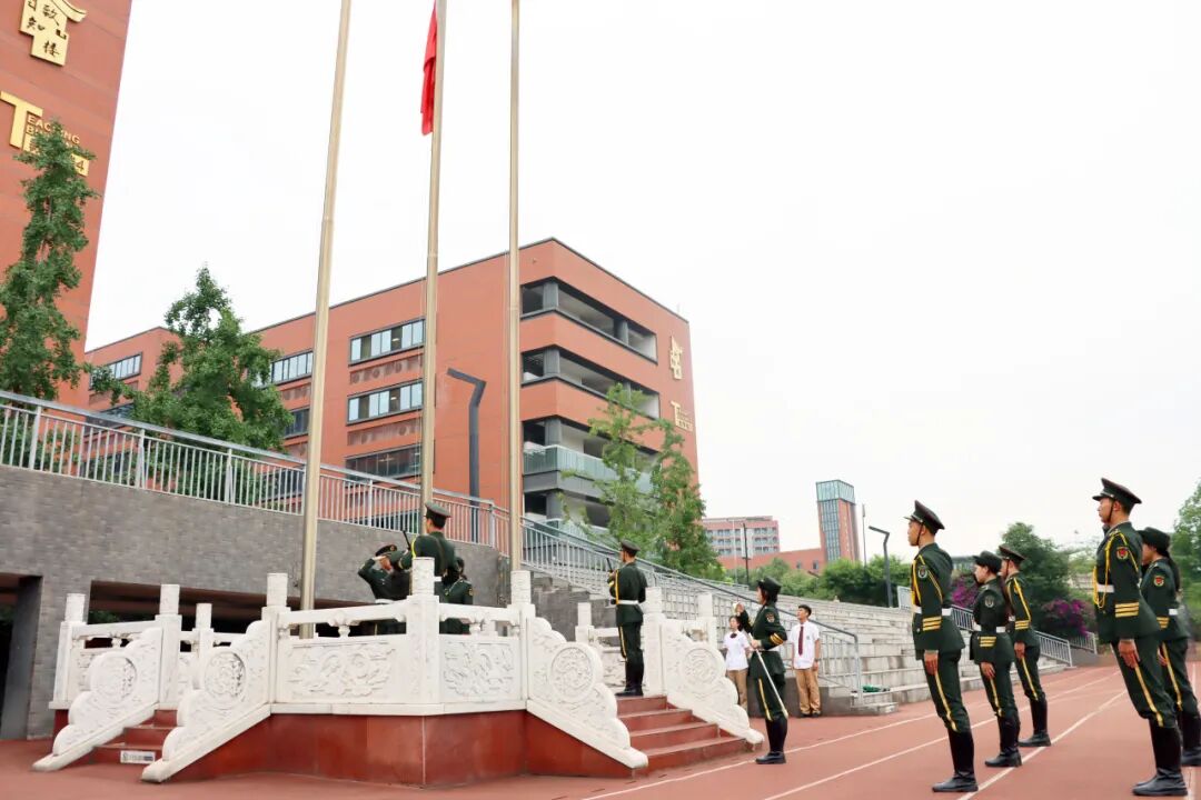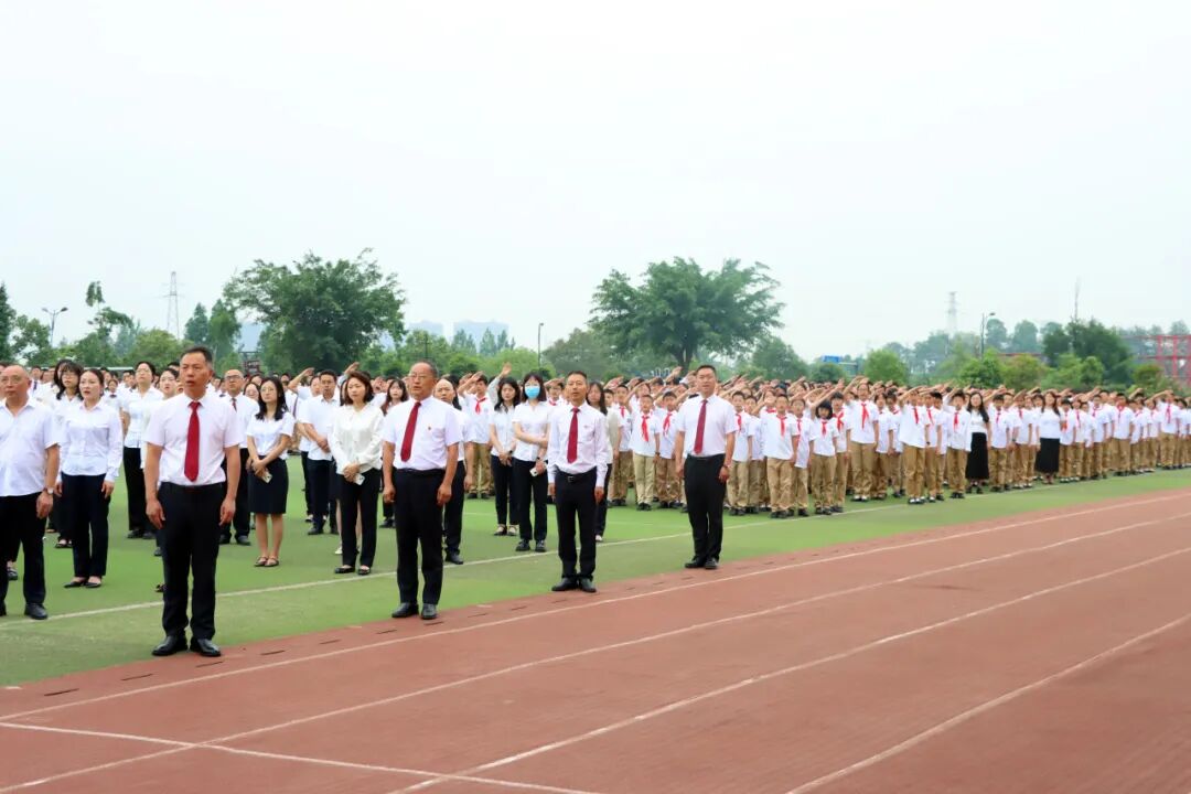 2025年6月3日,我校在运动场举行了第十六周升旗仪式,全体师生着正装参加。本周升旗仪式由校主持队朱崇毅、杨雅妍同学主持。