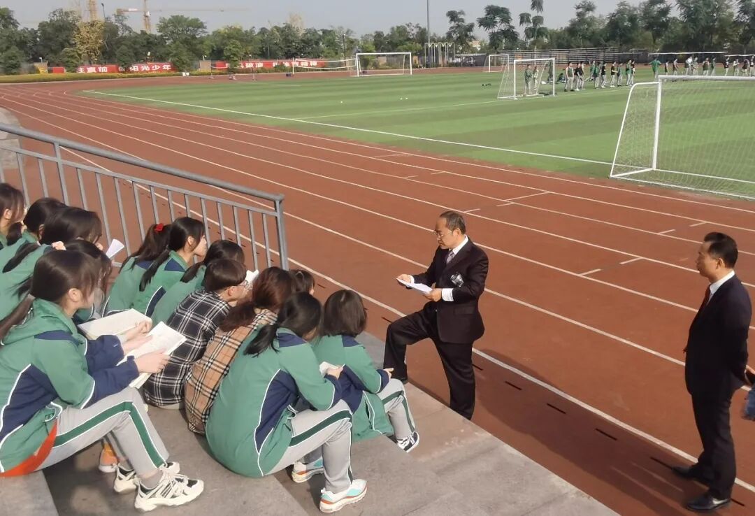 李校长走路很快,快得让别人不容易跟上那种。他先到学校正门口,感叹门外那个宽阔的广场,又说那个塔楼上可以有一副对联。校园里那些数不清的角落,这里可以立几块展板,那里可以搞一些课外活动,李校长“指点江山”。坡地地形,错落有致,石阶众多,很有层次感和美感!这位永远重视体育的校长,看到那一条条宽阔的道路,直说学生沿着这路跑步多好啊!看到一些树长得不好,就说这里应该换一棵什么样的树,看到“成长林”里有些树都枯死了,“气得”不行,说枯都枯死了还怎么“成长”呢?看到一个水池,又说水太浅了,鱼儿都养不活。看来李校长已经把这里当成自己的“新家”了,对校园里的任何东西都观察得格外仔细。
