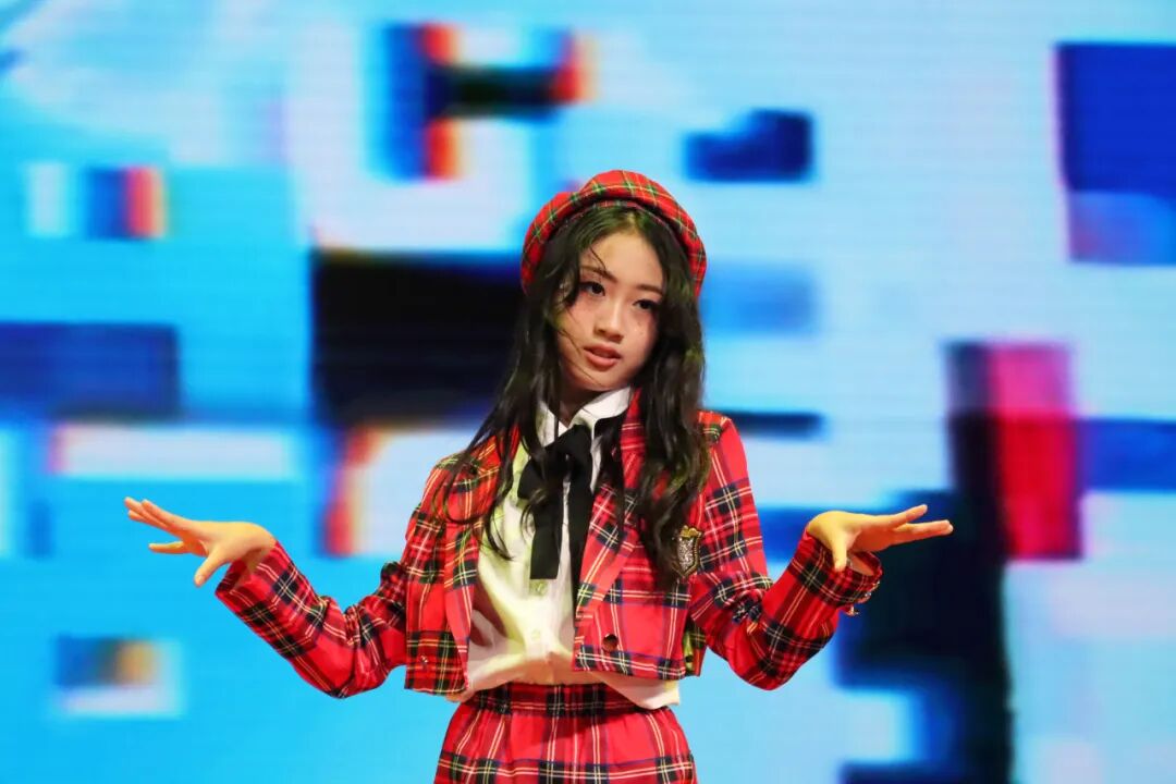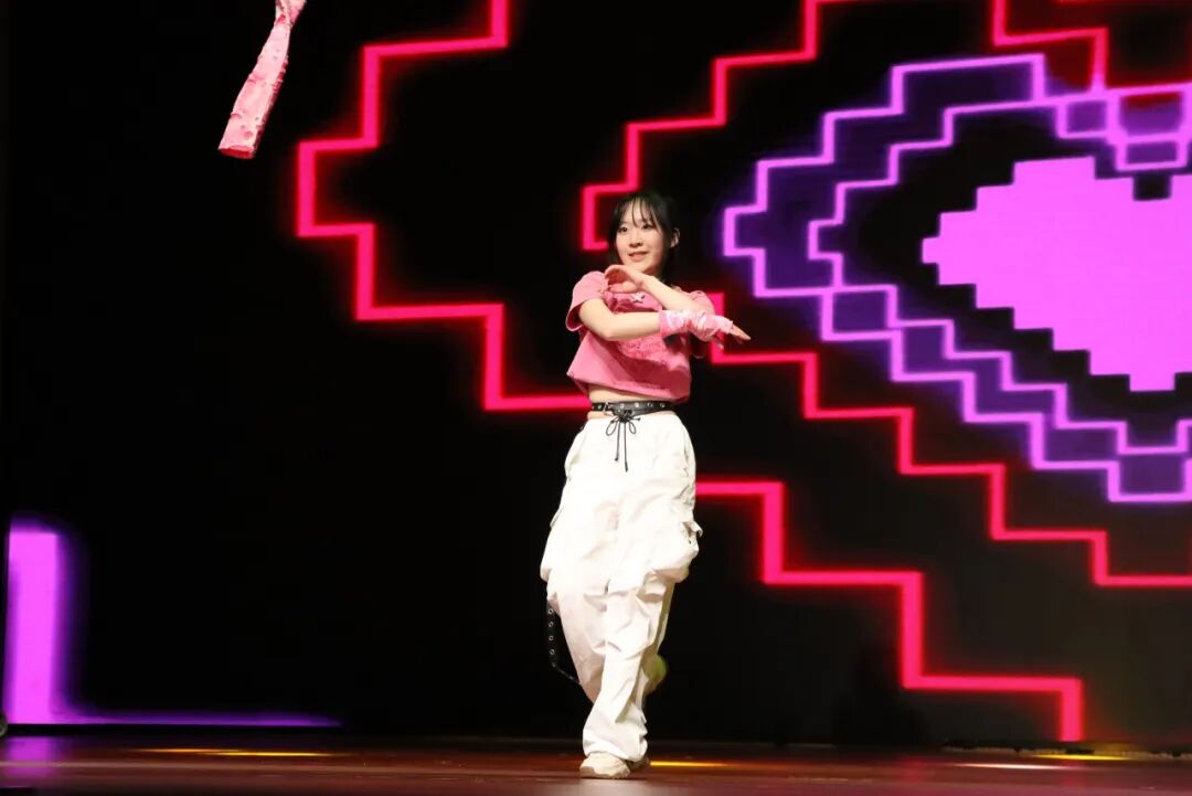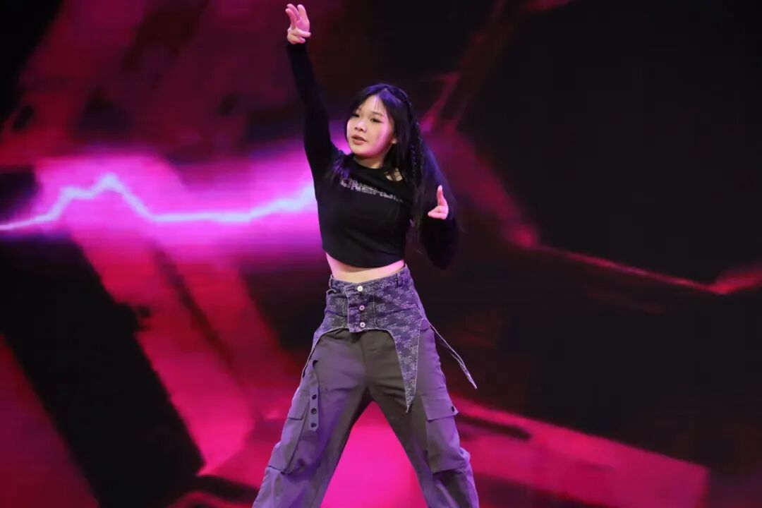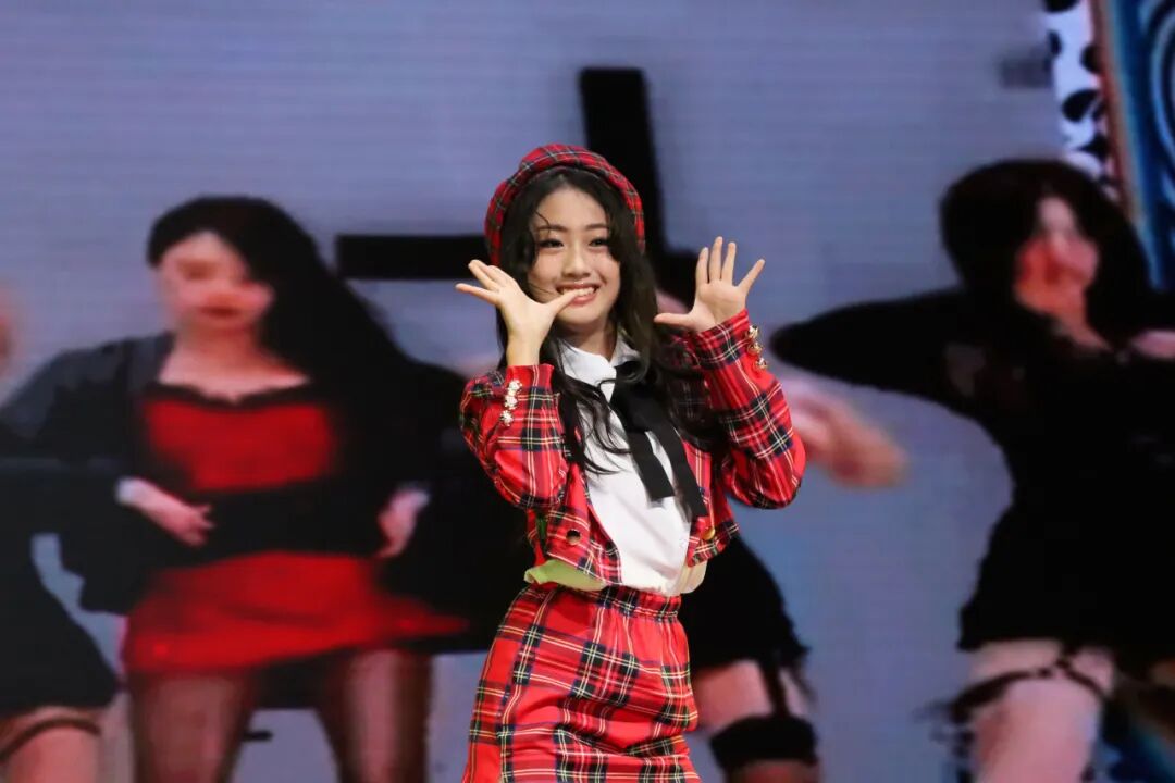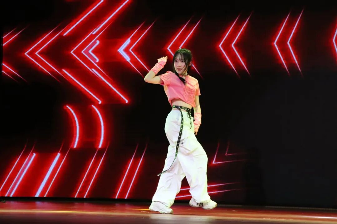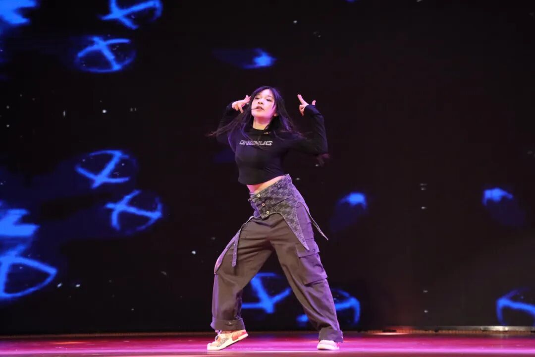 她的舞姿充满力量,每一个动作都恰到好处地展现了舞蹈的精髓。她始终保持着微笑和自信的表情,她的舞蹈不仅仅是一种技巧的展示,更是一种情感的表达和传递。她用舞蹈诠释了青春的美好和活力,也展现了自己的独特个性和魅力。