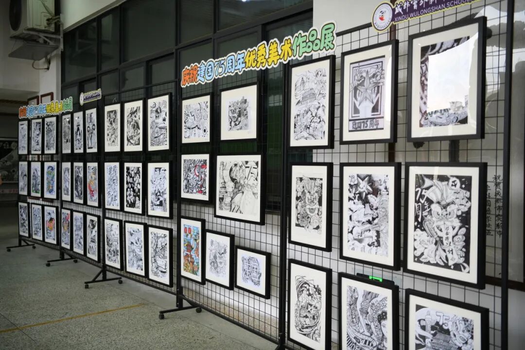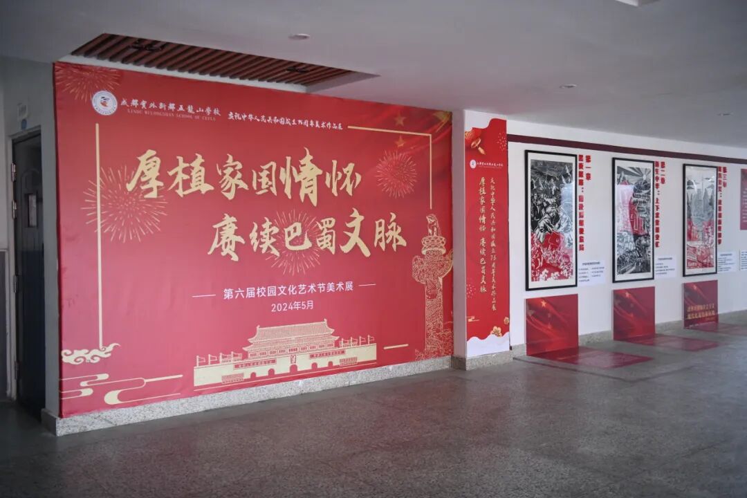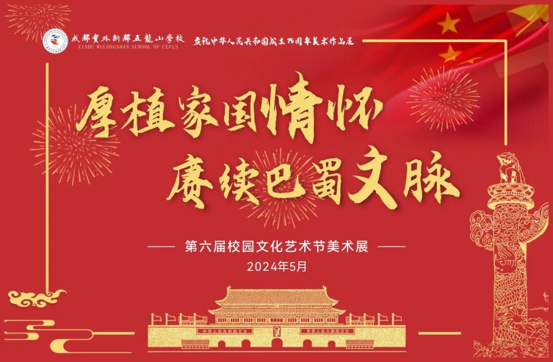 为进一步贯彻落实党中央、国务院《关于全面加强和改进新时代学校美育工作的意见》的文件要求,秉持我校“立德树人,办人民满意的教育”的宗旨,推进学校美育校本化实施,陶冶学生艺术情操,展现校园文化魅力,打造“欢乐与幸福校园”,2024年5月23日,以“庆祝建国75周年”为主题的系列美术作品在成都实外新都五龙山学校六艺楼艺术长廊正式展出。