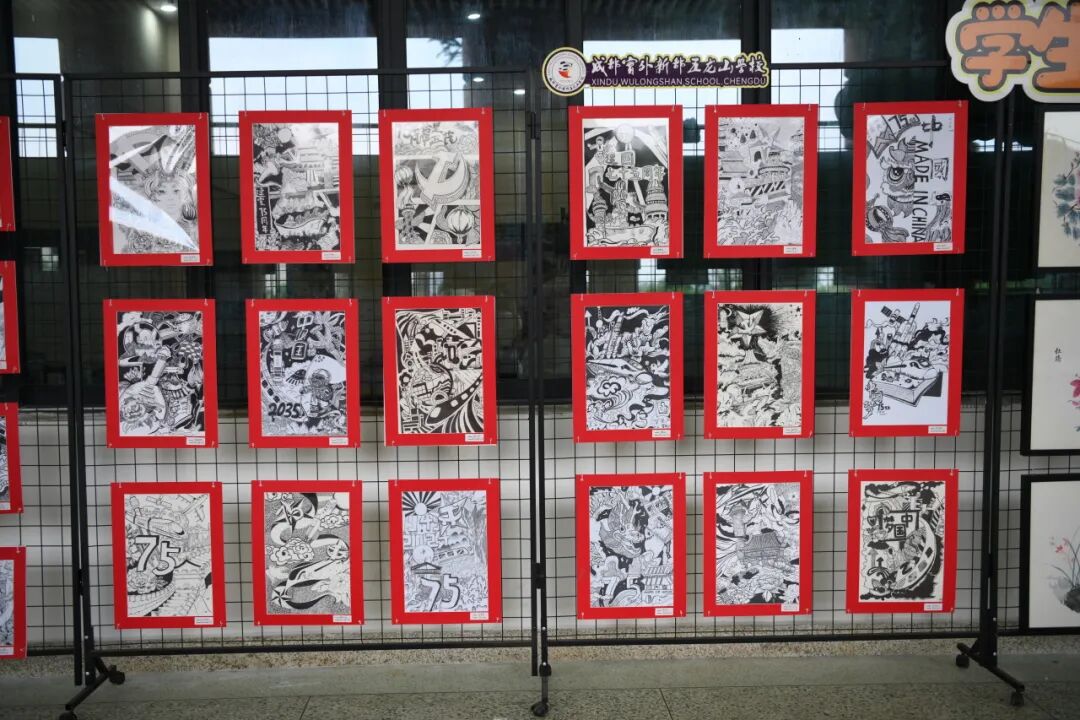 经过建国75年的风雨征程,在锦绣巴蜀的怀抱中,实外五龙的学子以笔墨为舟、妙手为帆,绘梦丹青,吟咏千古风华,旨在深耕家国深情的土壤,让每一颗年轻的心,如繁星般璀璨,照亮古今文脉的长河,延续那不绝的辉煌与梦想。这不仅是绘画线条的交织,更是心灵与历史的深切对话,唤醒沉睡的记忆,织就家国与文化的壮美新篇章。