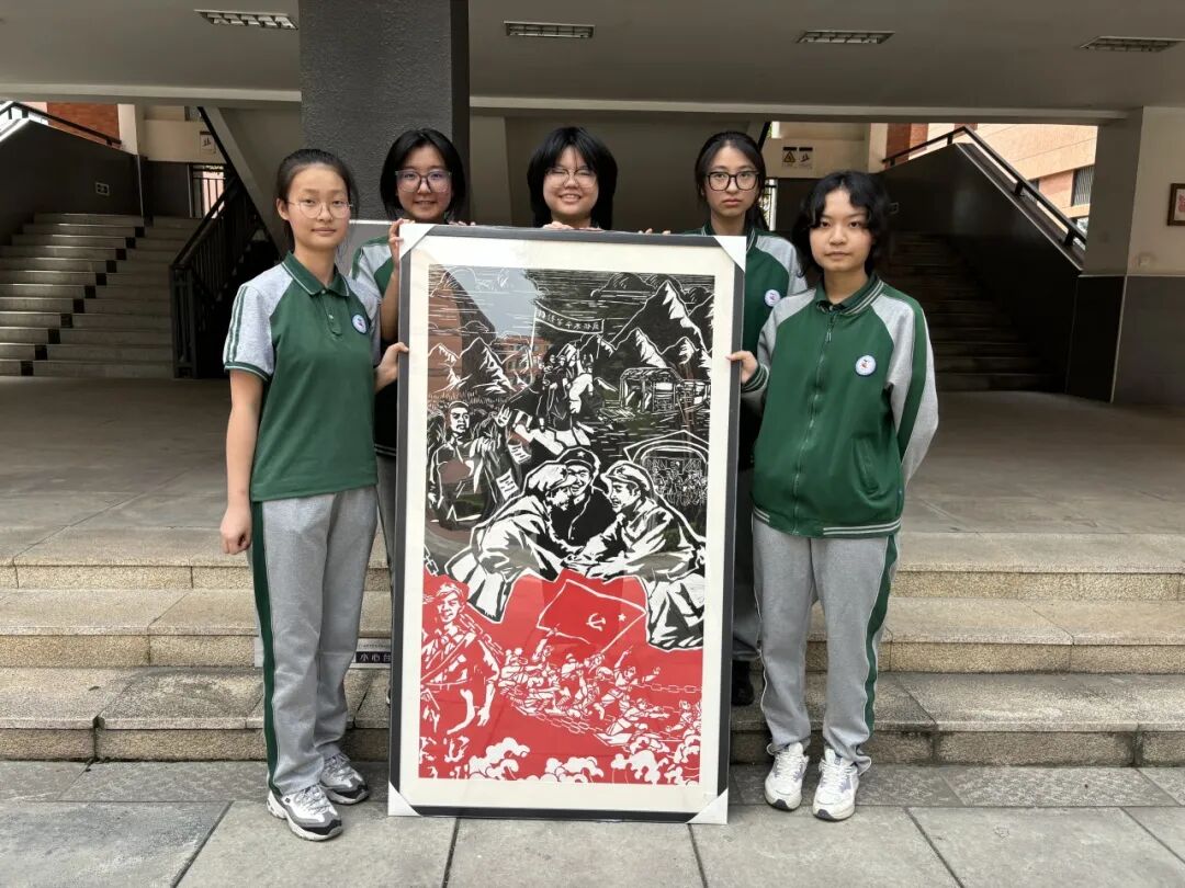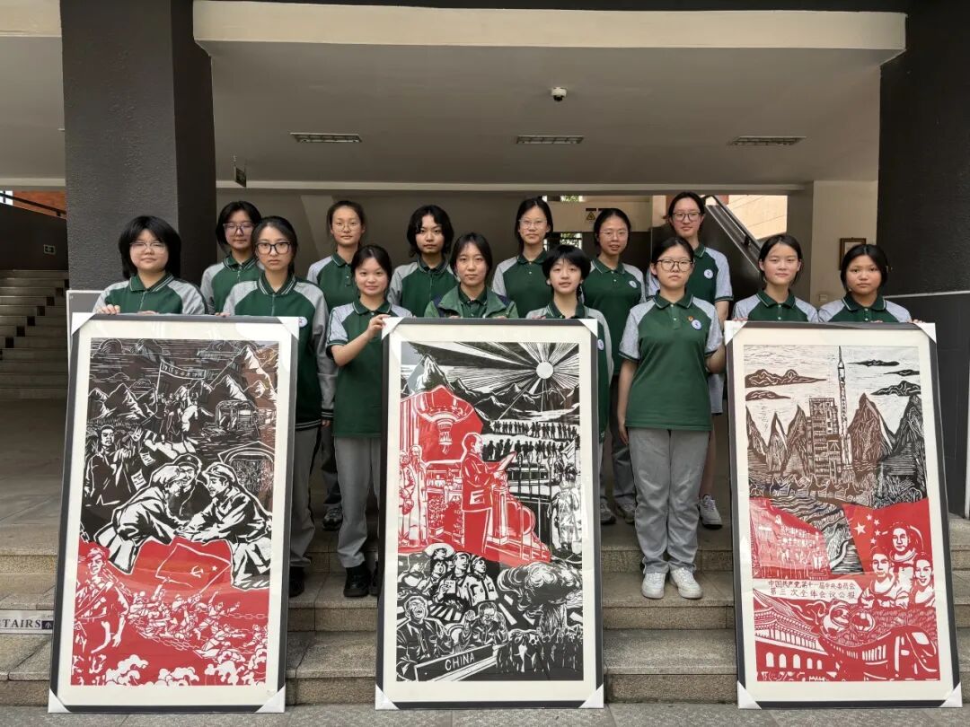 剪纸和版画,作为视觉艺术的一种重要门类,是校园美育的一种重要载体。在新中国成立75周年这样一个历史性时刻,学生以剪纸、版画镌刻相结合的新形式来呈现中华儿女在峥嵘岁月中的艰苦探索历程以及中国特色社会主义的伟大实践,在具体生动的历史场景的刻画与描绘中,拉近与历史的距离,知史爱党、知史爱国,不仅让“四史”教育更加生动引人,促进“四史”教育入耳、入脑、入心;也有利于充分发挥美育培根、筑魂、化美、育才的功能,在学生心中厚植爱党、爱国、爱社会主义的情怀。