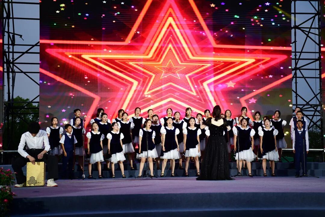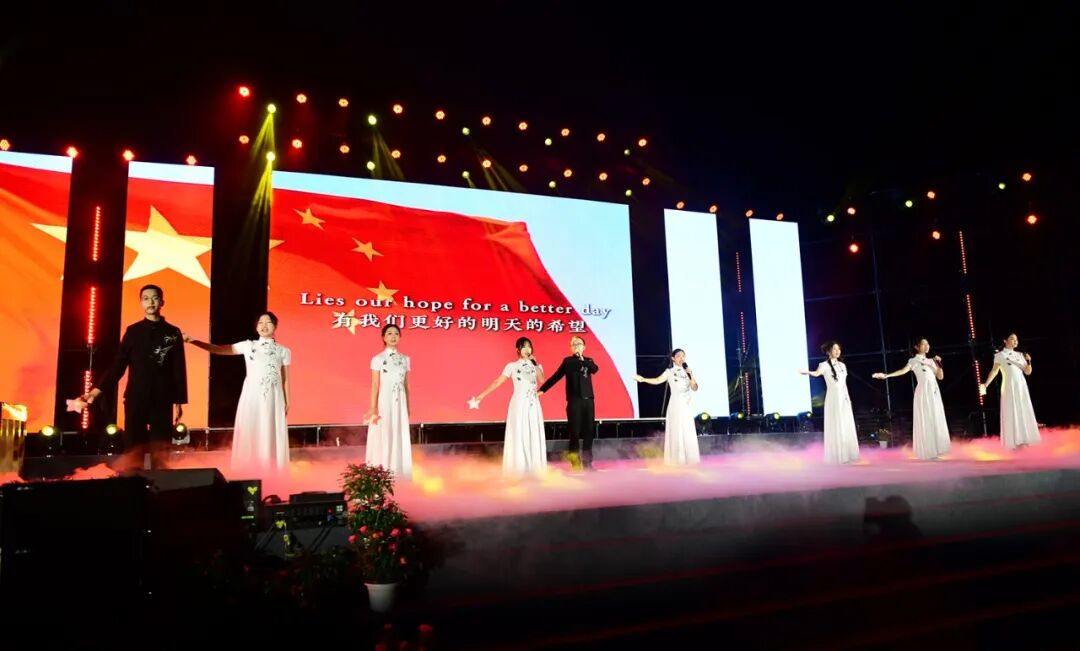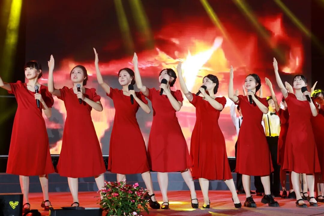 汇演最后,李俊校长与党员老师们一起演唱了《时代领航》。