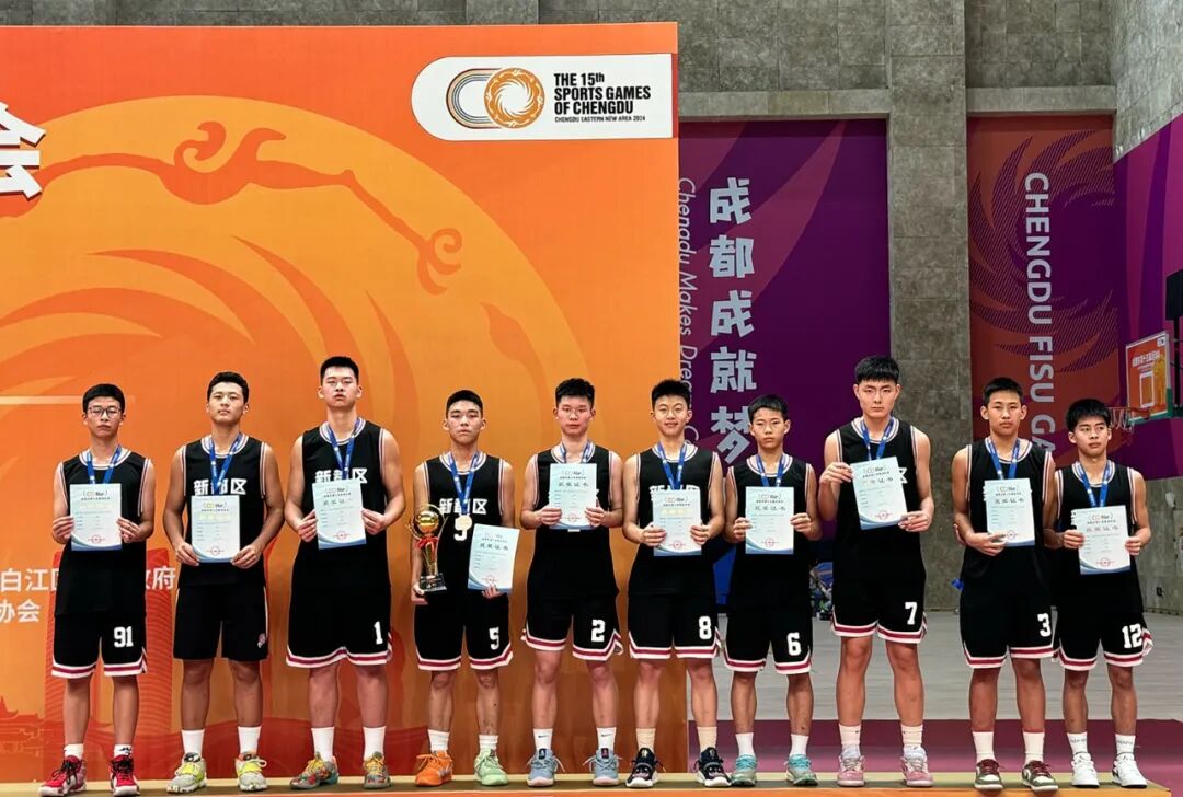 成都实外新都五龙山学校在此次比赛中代表新都区参加男子甲组的角逐。接到参赛任务后,学校领导高度重视,迅速成立了以李俊校长为组长的领导小组,并以我校篮球队为班底,组建了新都区男子甲组代表队。队员们在赛前经过严格的训练与磨合,以最佳状态投入。