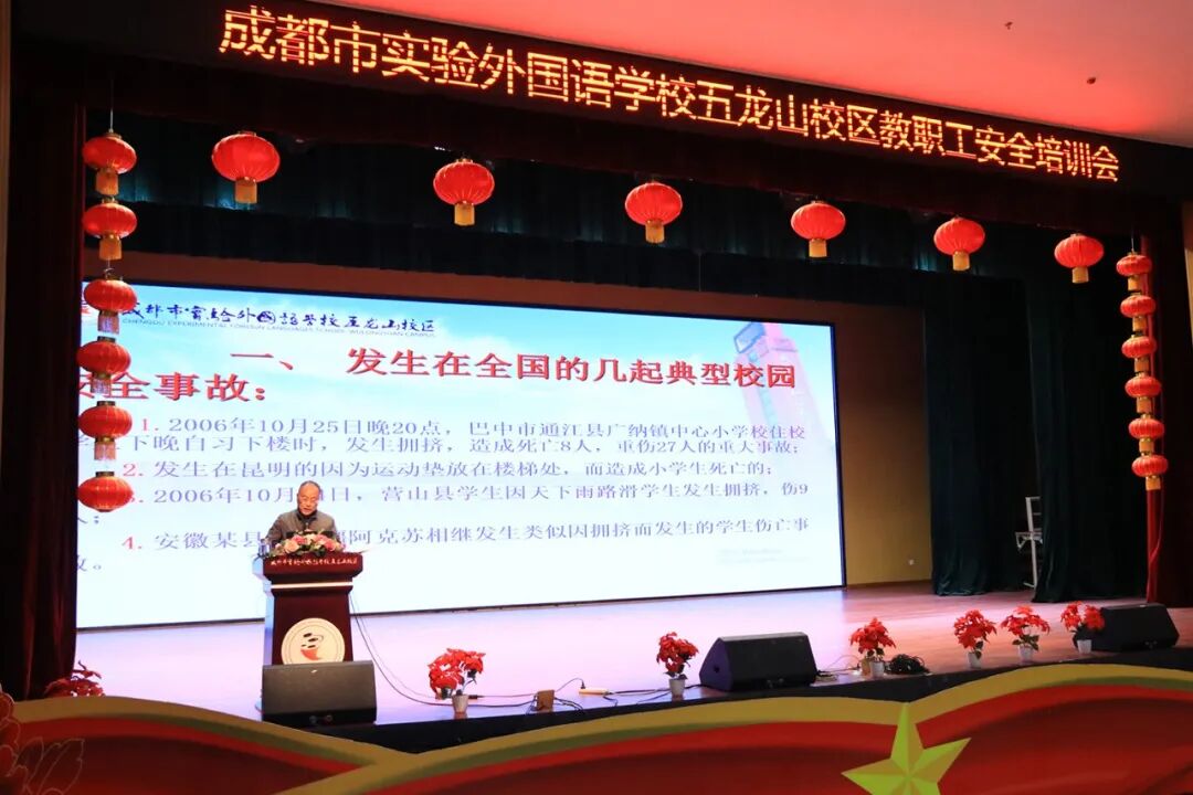 (4)学校要不断完善、优化已有的安全工作预案体系,并加强贯彻落实。包括《成都市实验外国语学校五龙山校区重大疾病传染病预防及处理预案》《成都市实验外国语学校五龙山校区消防安全工作预案》等,各部门、各年级组、各班要加强对安全制度体系的学习、落实,严格按照工作条例执行。全体教师、全体值班干部要克服侥幸心理,坚持执行“有学生在,就必须有老师在,有干部在”的安全工作原则。