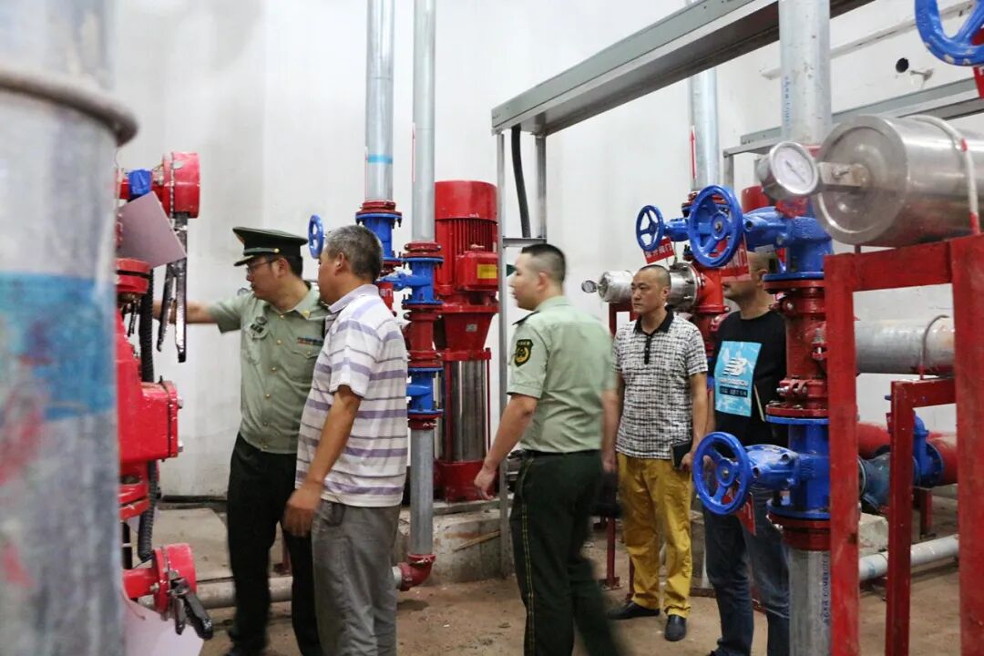 新都区消防大队的领导们在我校检查消防设施设备