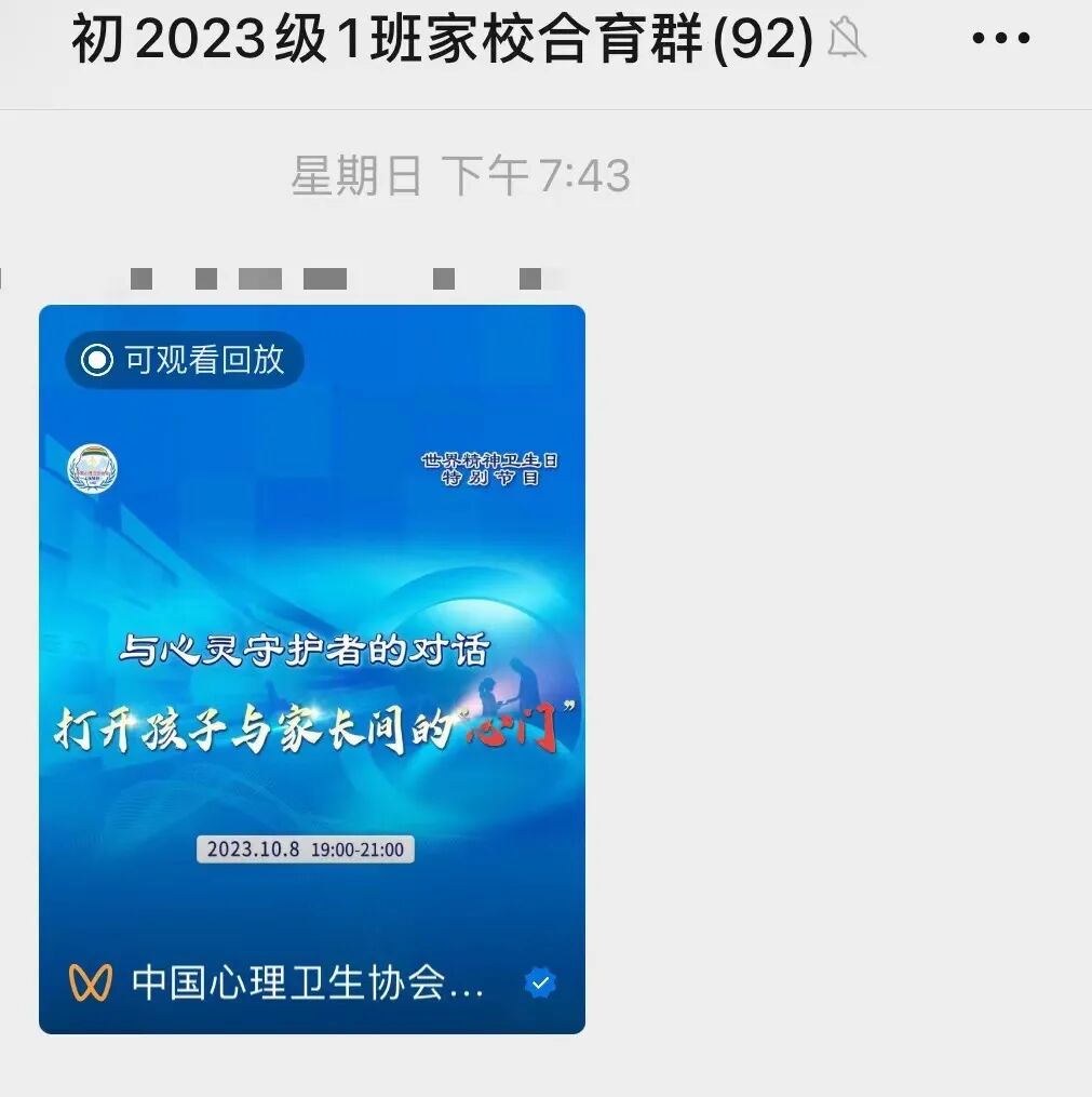 学校组织全校家长学习世界精神卫生日特别节日“与心灵守护者的对话”,旨在帮助家长了解孩子的心灵特点,掌握与孩子的沟通技巧,打开家长和孩子的心门。