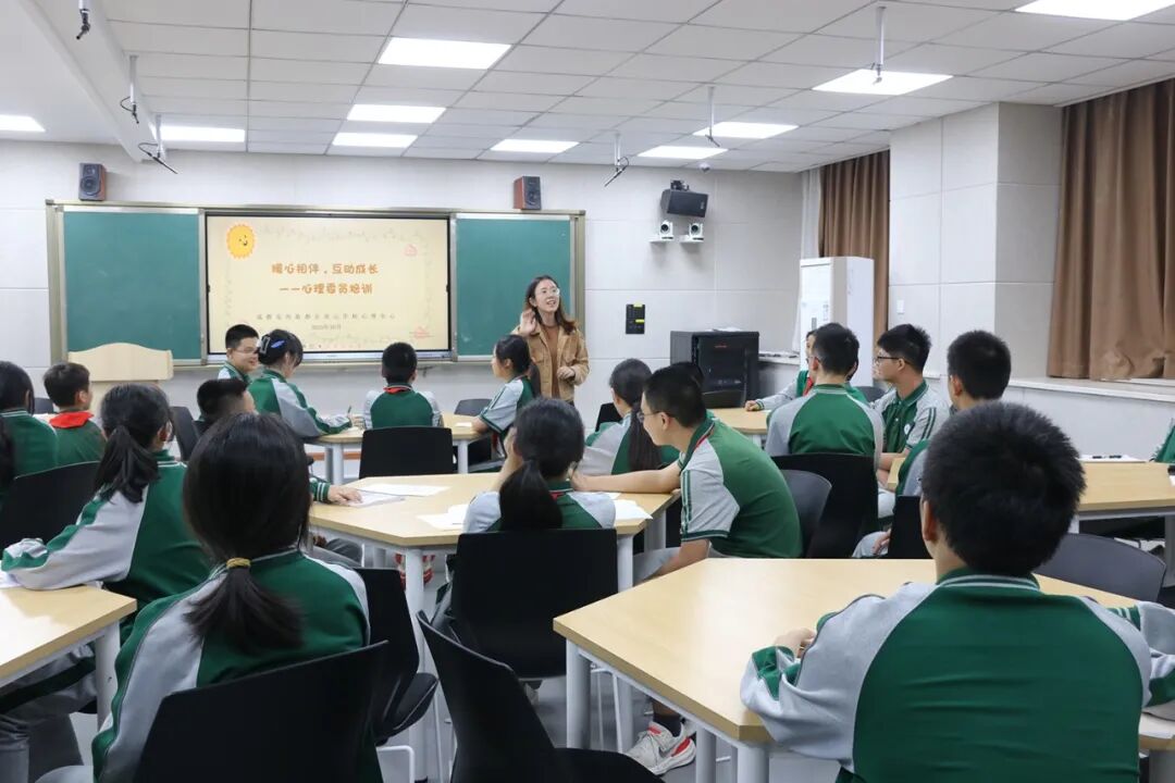 学校组织开展“暖心相伴,互助成长——心理委员培训”心理委员培训,希望心理委员们充分发挥个人能力,以点带面,将所学知识与技能传递给更多同学,促进学生健康成长。