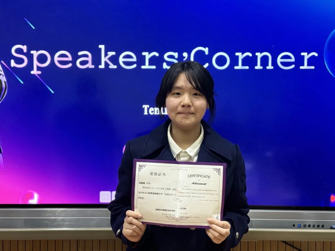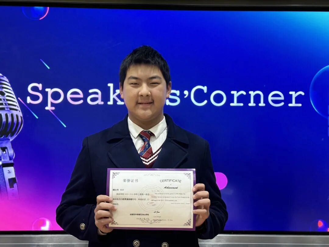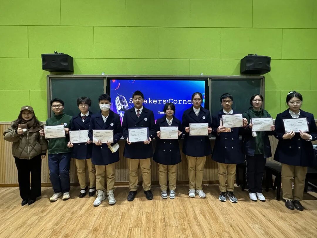 12月15日,我校高一英语演讲角在学校音乐教室如期举行。本期演讲角由来自高一3班刘杰瑞主持,高一1班关爱琳、蒲义佳,高一2班魏士杰、程子又,高一3班汤馨媛、陈冠行,高一4班许依然,高一5班步凯文同学参加了本期演讲角。
