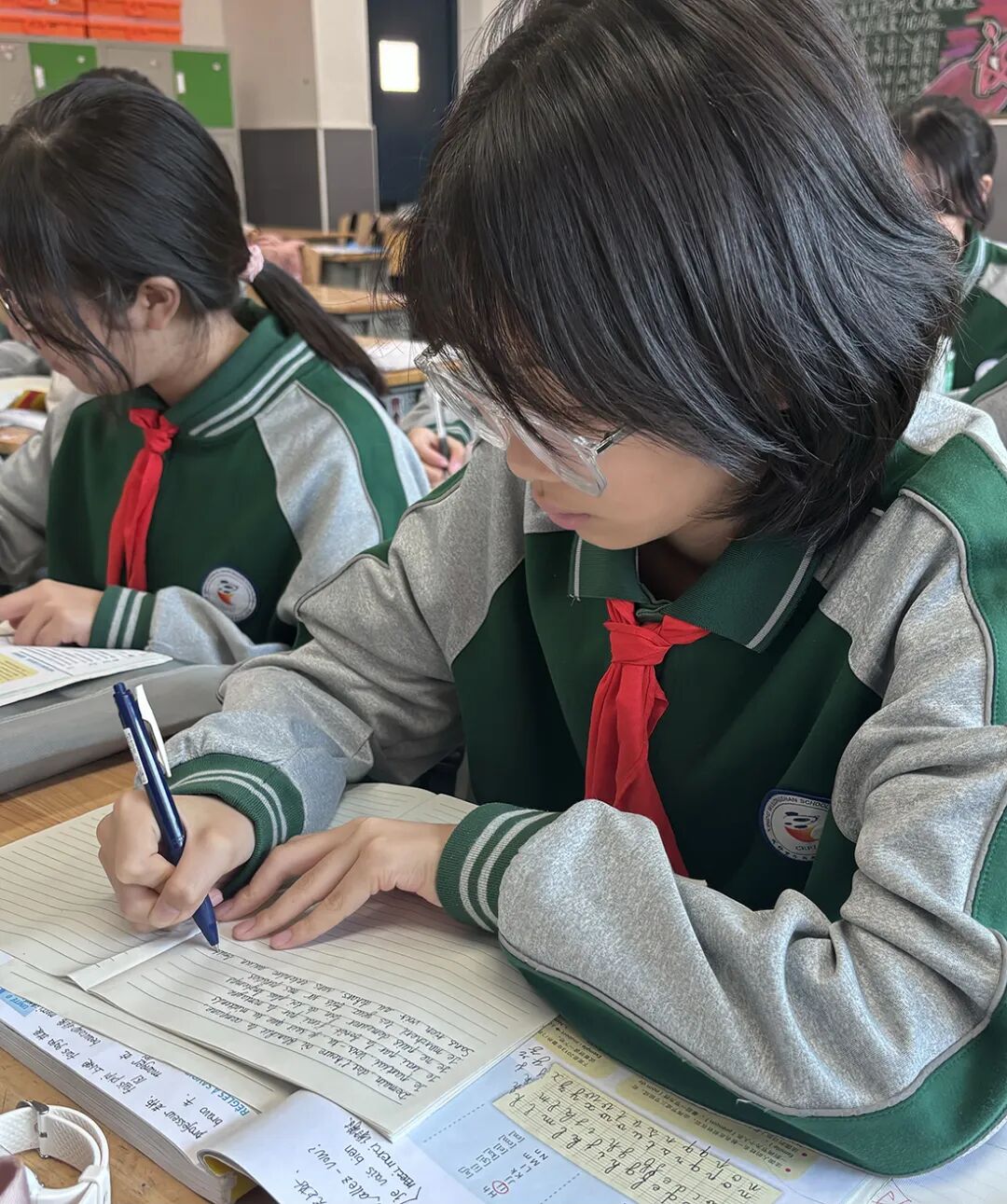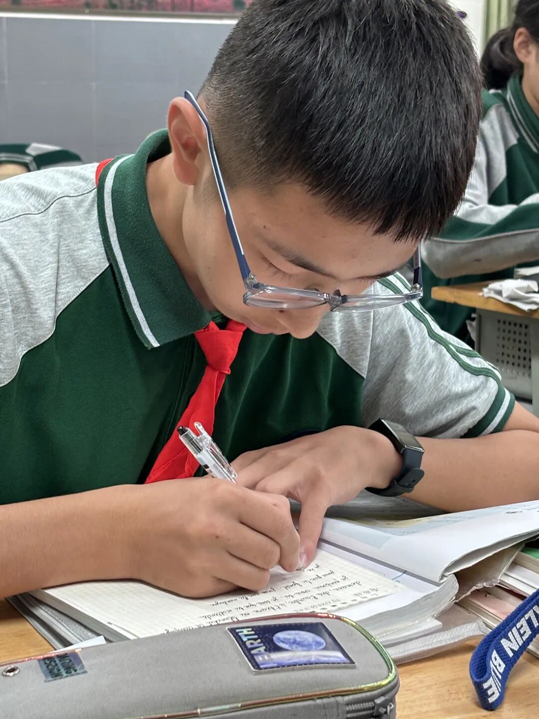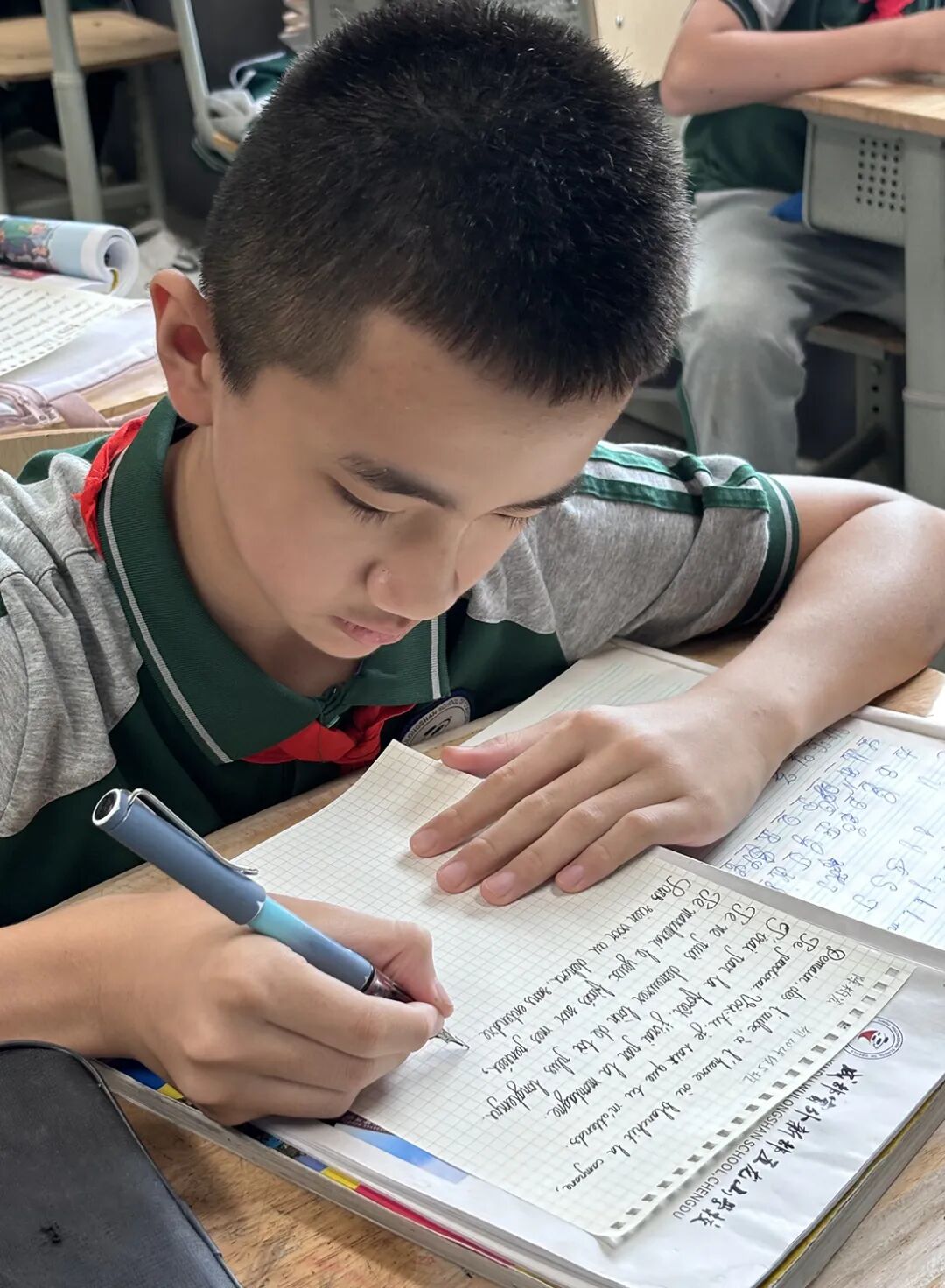本次法语书写大赛旨在提高英法双语班学生对法语书写的重视,激发同学们探索法国文化的兴趣,同时也为同学们提供一个展示自我风采的平台。比赛现场,同学们坐姿端正,神情专注,全情投入,一笔一划地书写着优美的法语诗句,用心书写着每一个法语字符。在同学们的笔下,法语字母仿佛跳动的音符,组合成了一幅幅精美的法语书写作品。