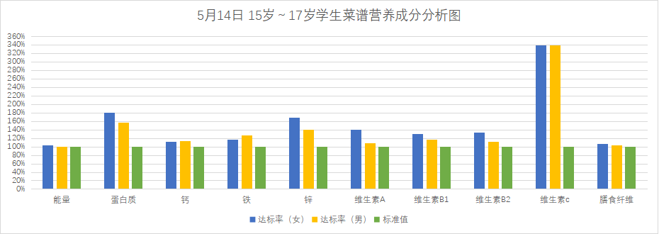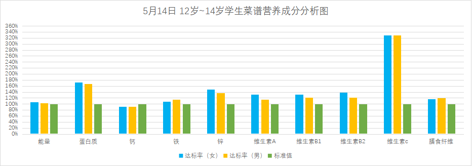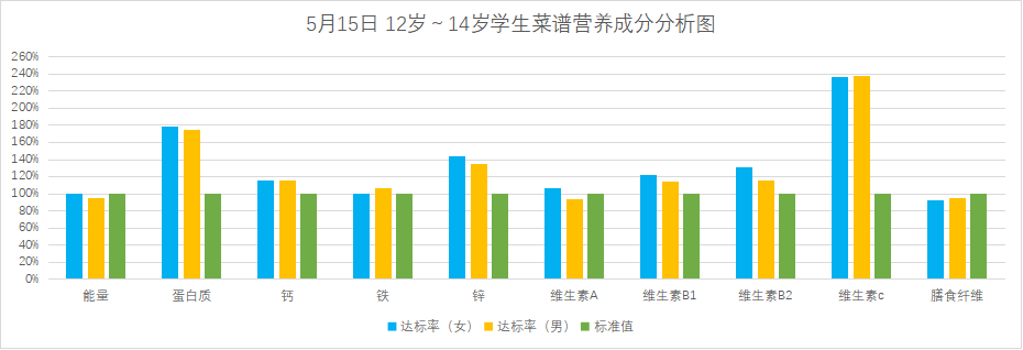 红烧排骨、茄汁肉片、双色肉丝、炒油麦菜、鲜藕海带汤、白米饭、水果